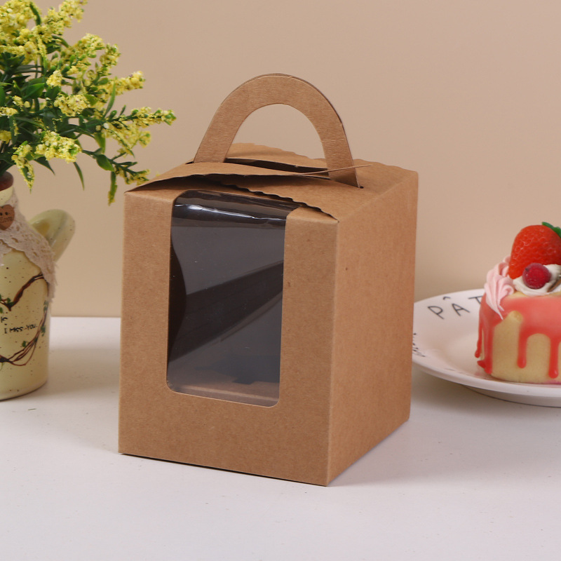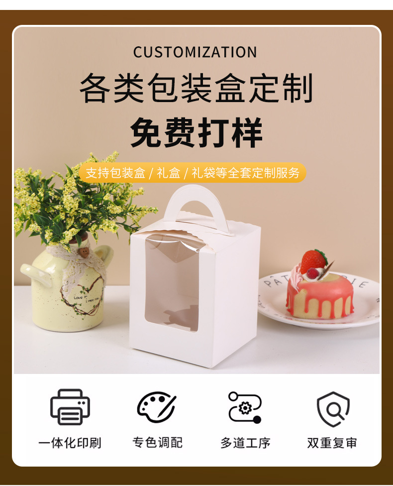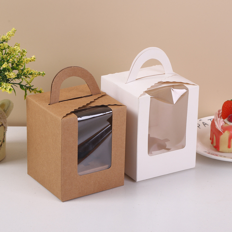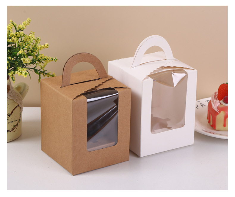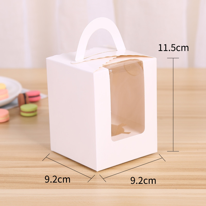 1格cupcake马芬盒纯白色手提纸杯蛋糕盒开窗西点木槺杯盒送内托