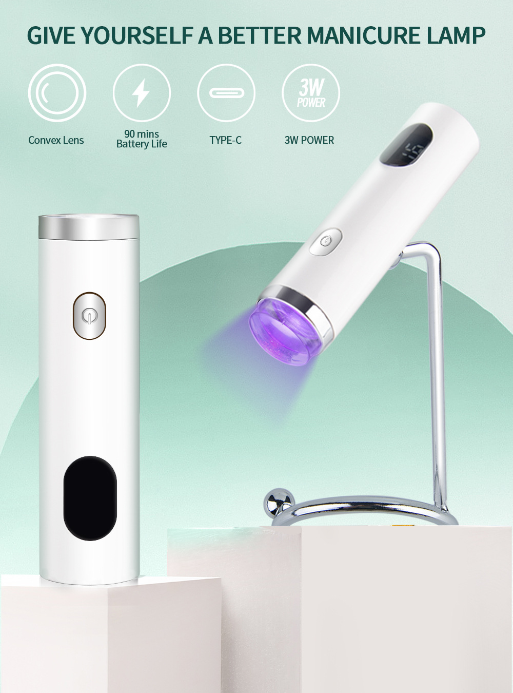 Nailpop跨境便携式 UV 指甲灯带磁性支架手持式USB充电指甲烘干器