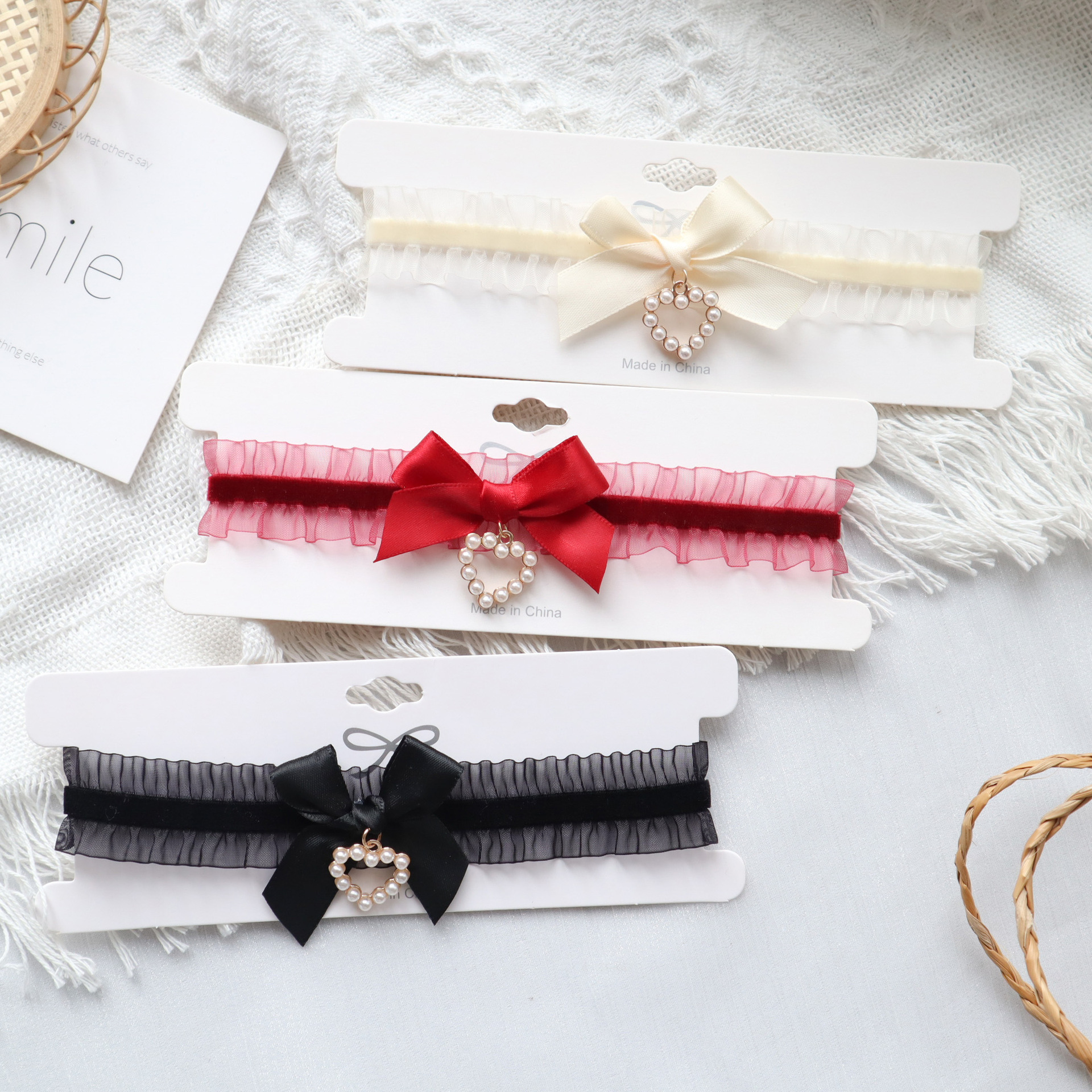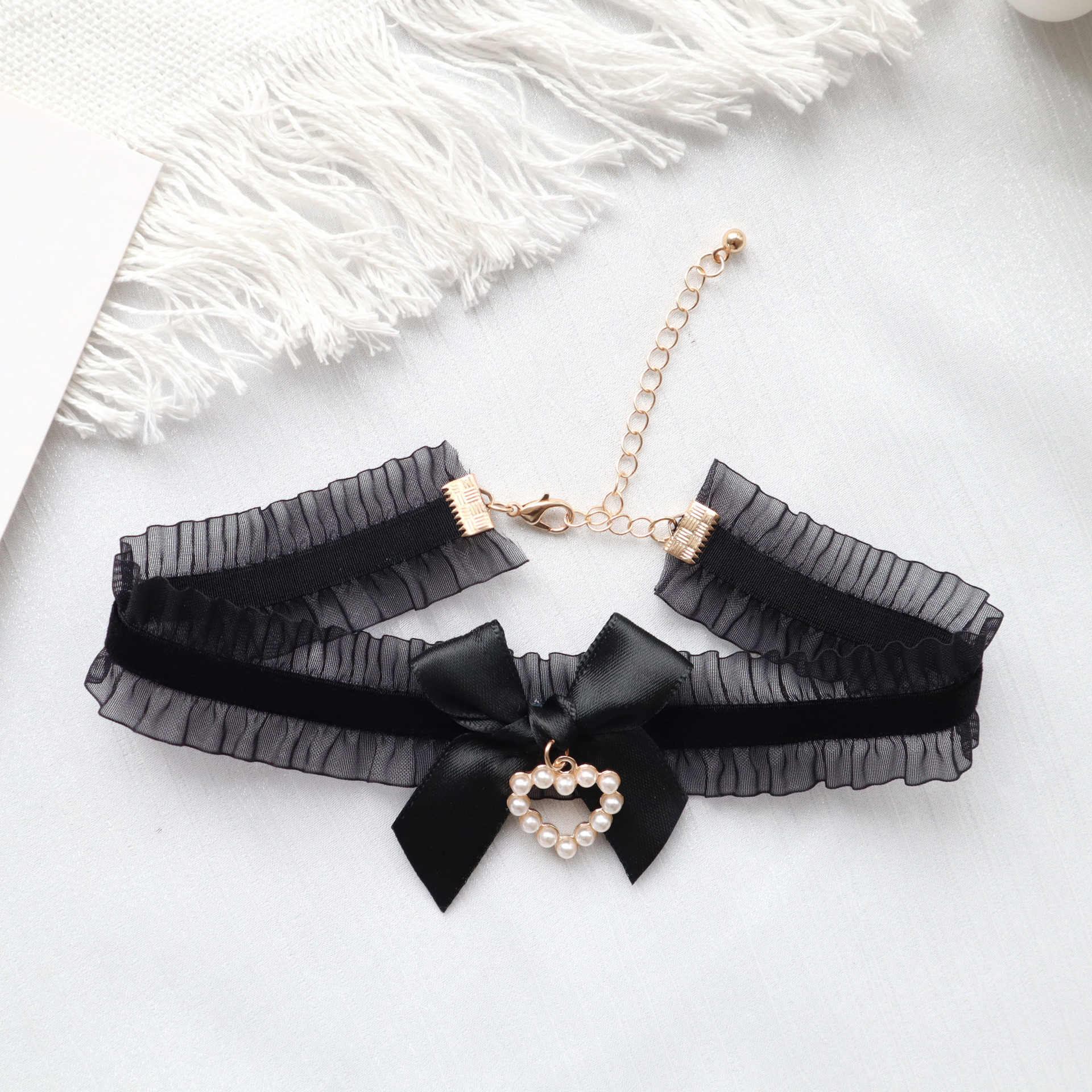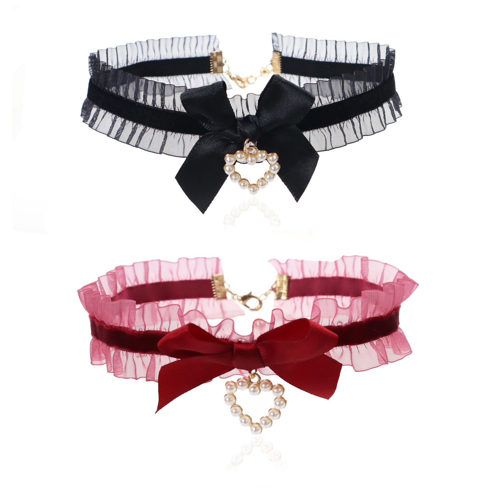 纯欲风饰品甜美Lolita珍珠爱心吊坠蝴蝶结颈链Choker锁骨链项链女
