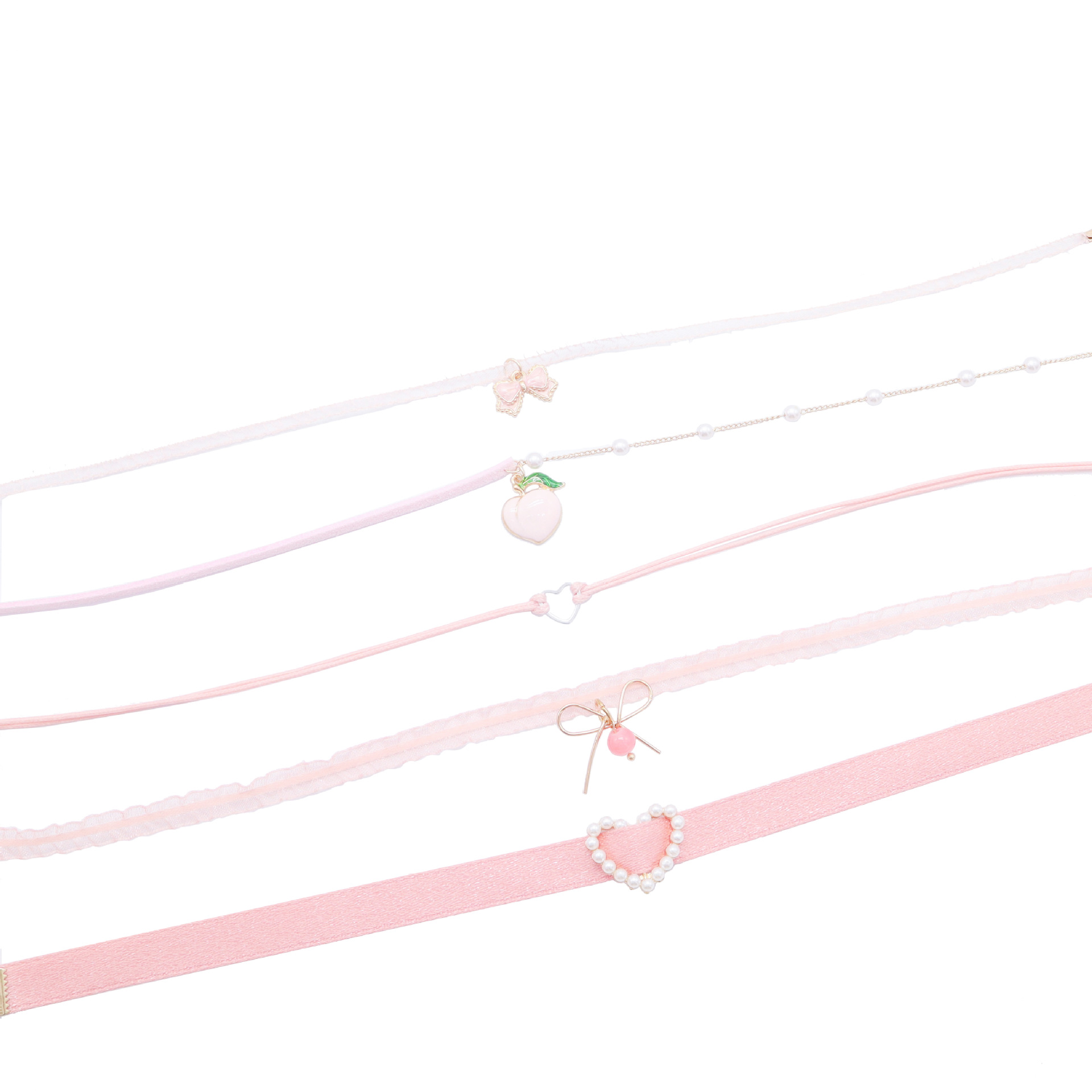 日系软妹项链女饰品粉色项圈桃心吊坠颈链choker小众设计感锁骨链