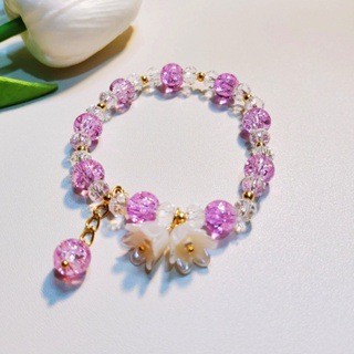 小红书手串绕指柔渐变色冰透粉铃兰花手链学生女生盘玩圆珠送闺蜜