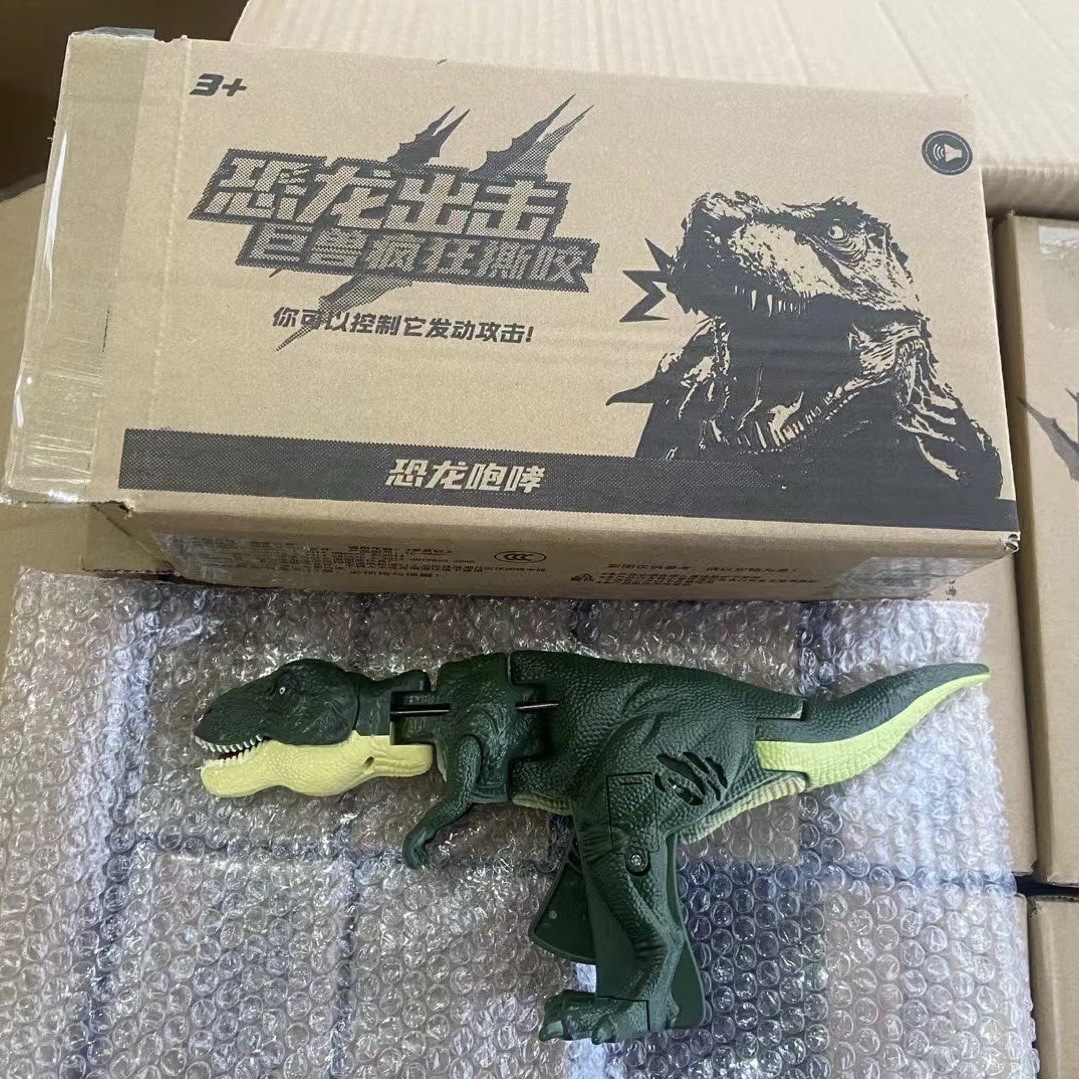 跨境爆款恶龙咆哮头部摆动咬合恐龙伸缩弹簧发声激怒暴龙整蛊玩具