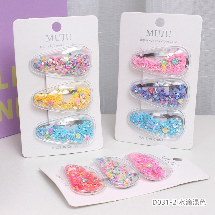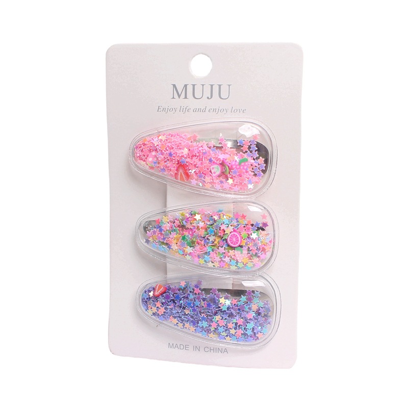 可爱亮片儿童流沙发夹3只卡装BB夹甜美少女侧边刘海夹闪粉发卡