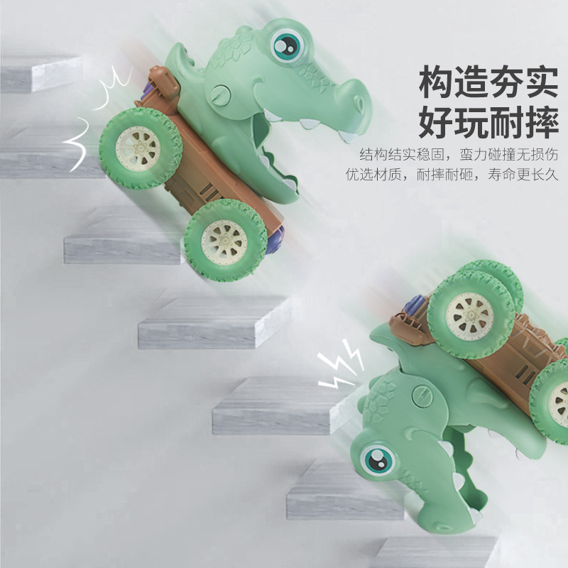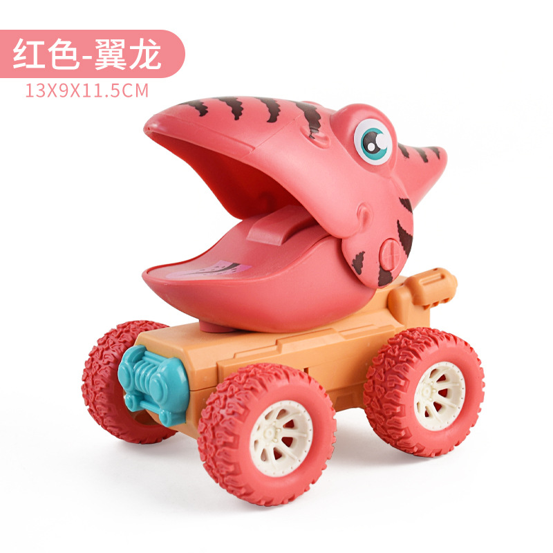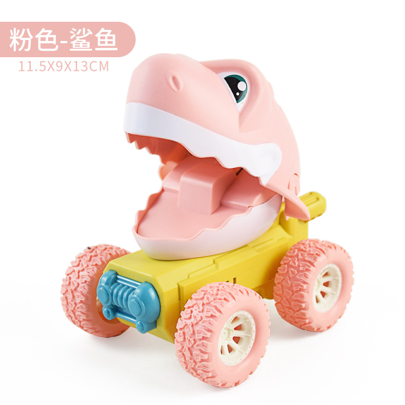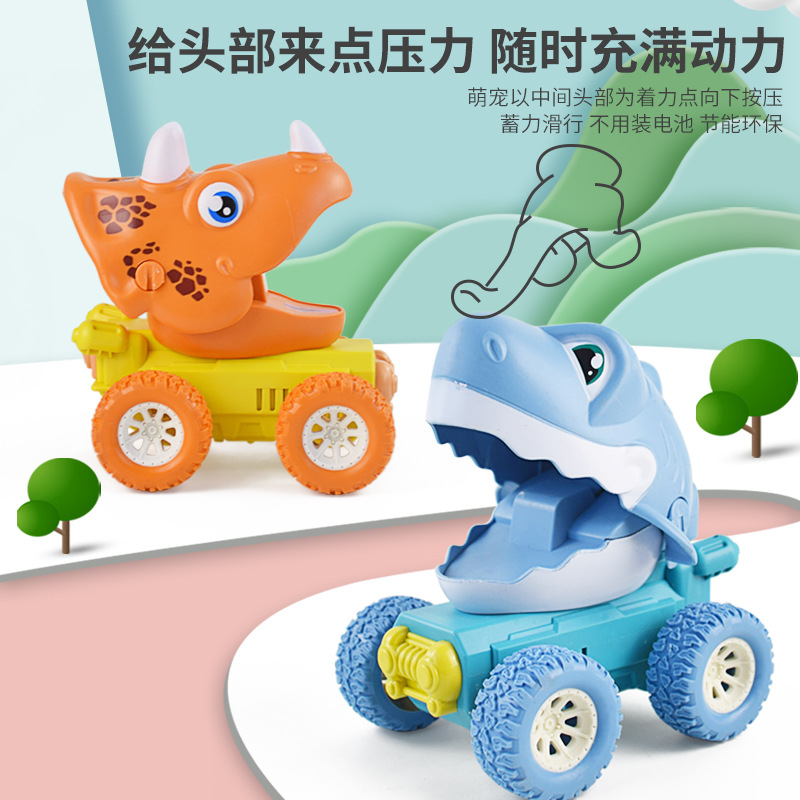 跨境儿童恐龙按压式回力车霸王龙鲨鱼耐摔动物模型玩具车男孩批发