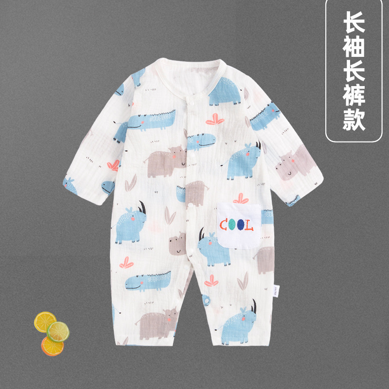 纱布皱布婴儿连体衣纯棉新疆长绒棉夏季长袖薄款透气宝宝哈衣爬服