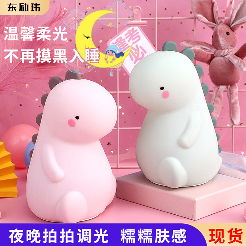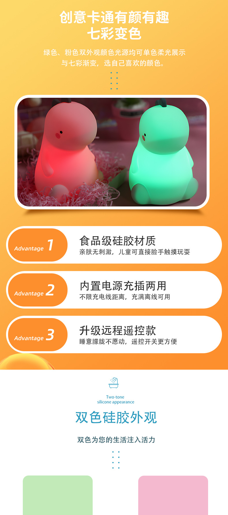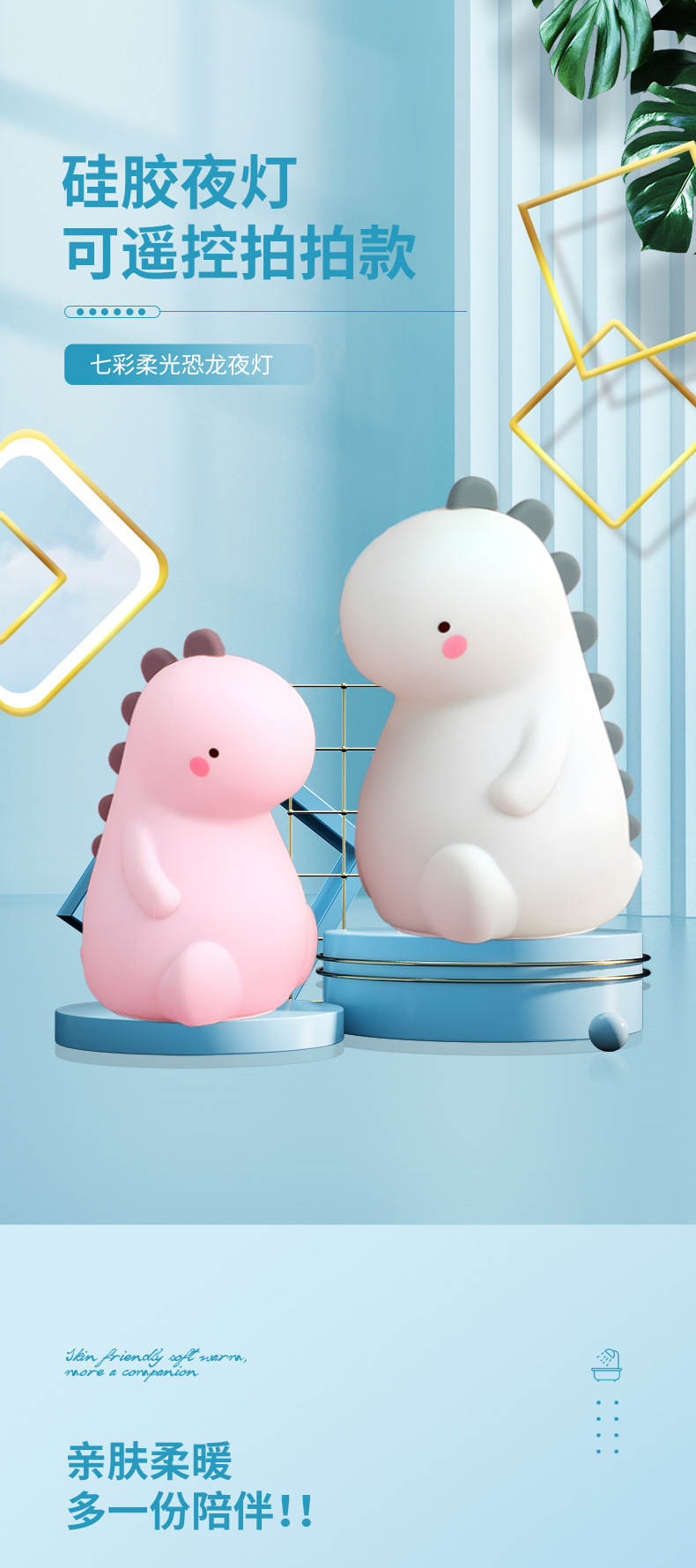 跨境恐龙硅胶小夜灯感应七彩卡通氛围灯床头充电可遥控变色拍拍灯