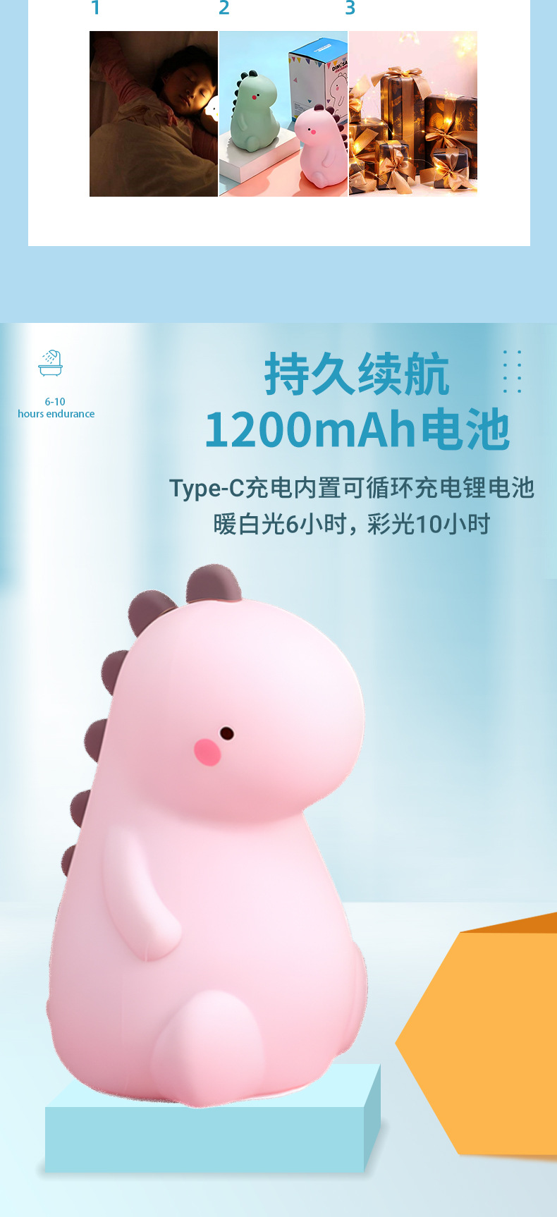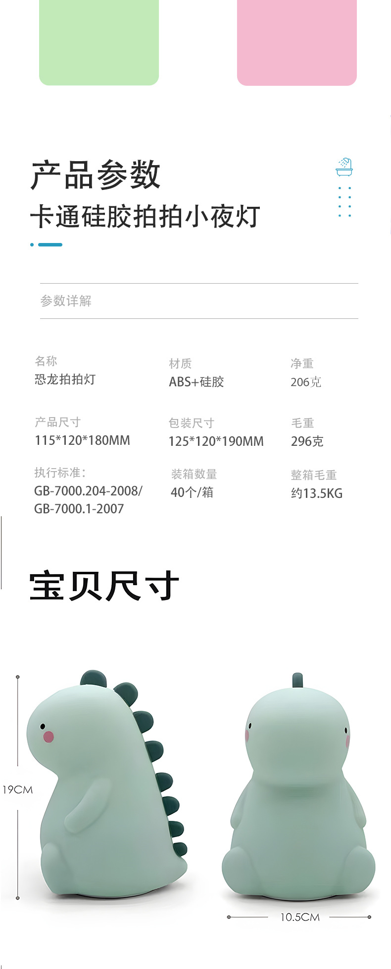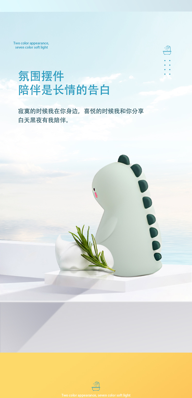 跨境恐龙硅胶小夜灯感应七彩卡通氛围灯床头充电可遥控变色拍拍灯
