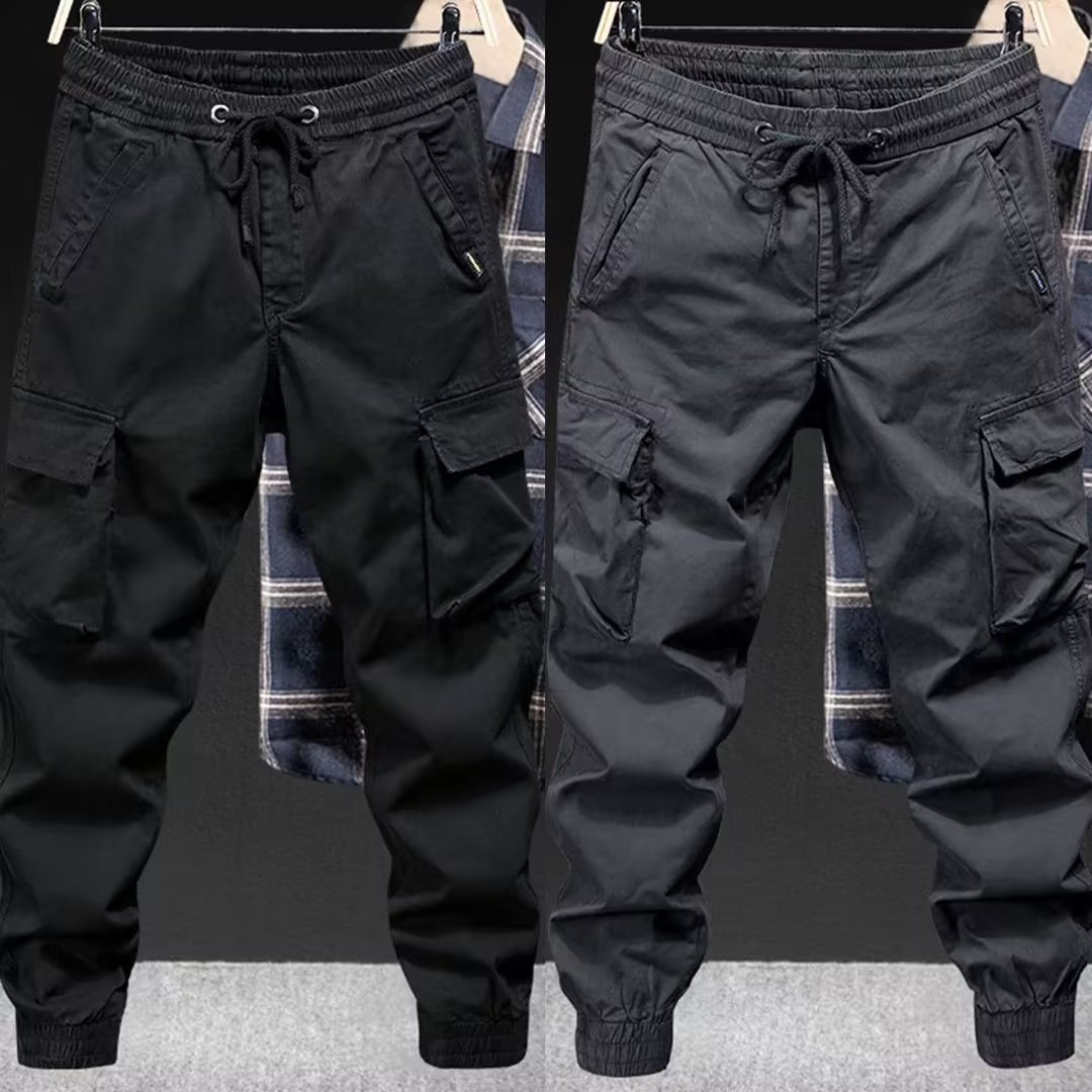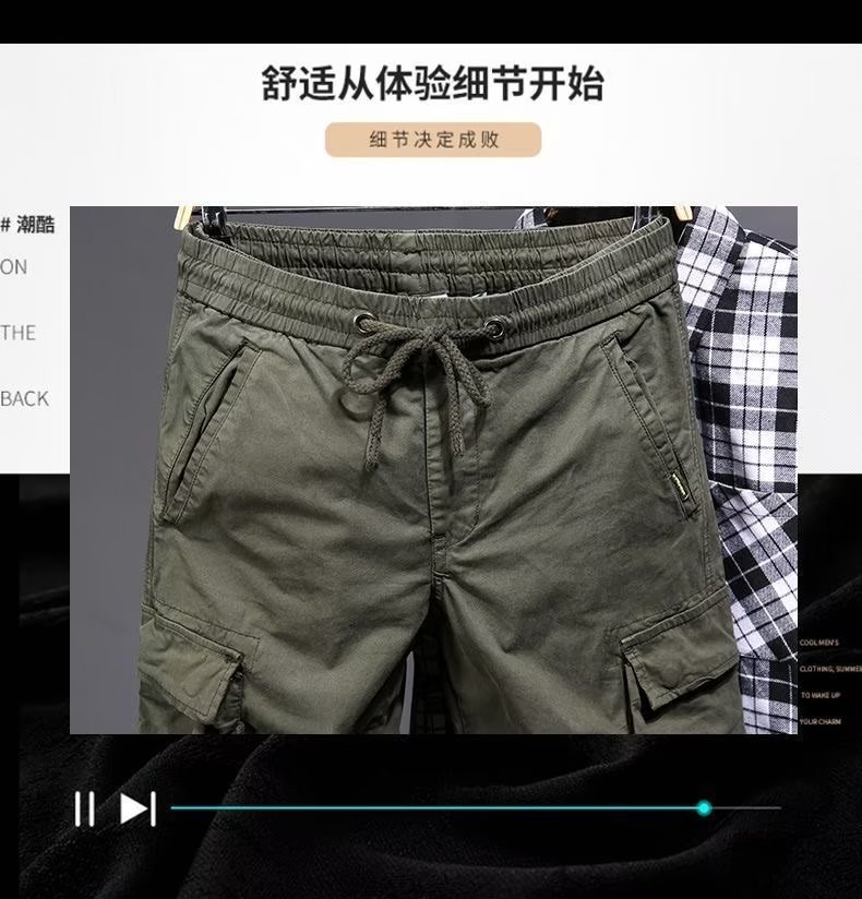 潮牌休闲工装裤男春秋潮牌宽松束脚纯色工装裤裤子男士美式休闲裤