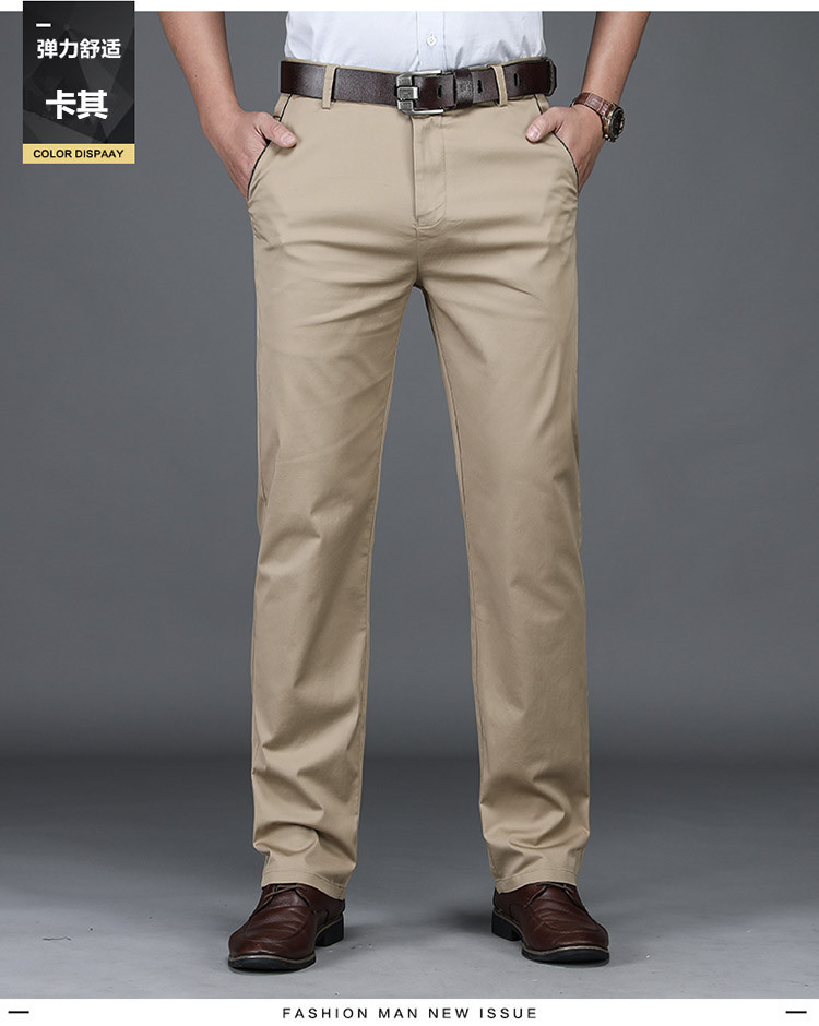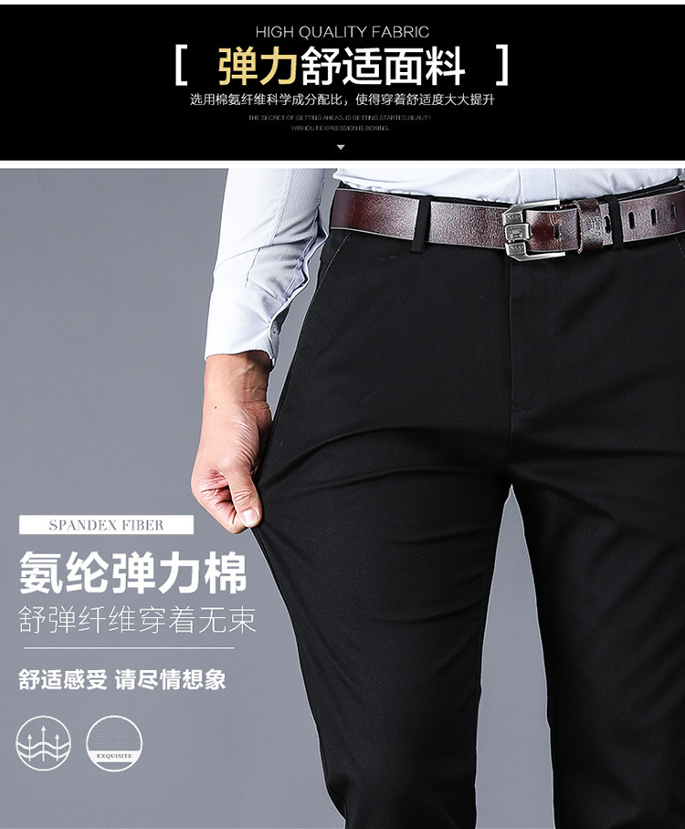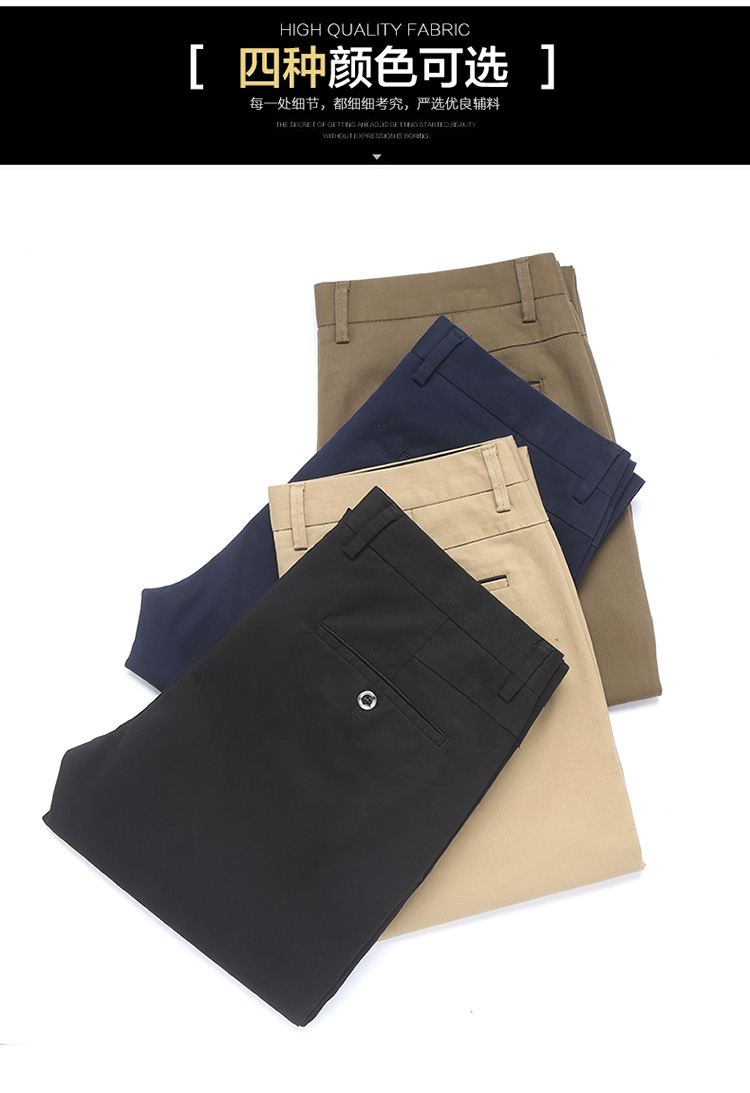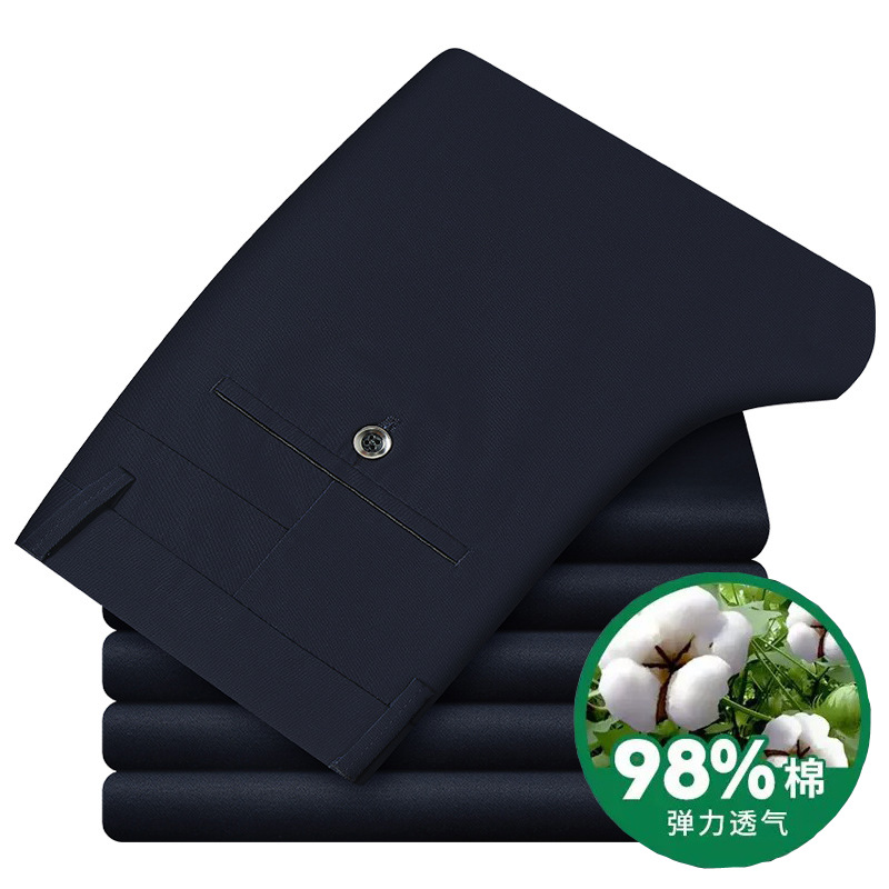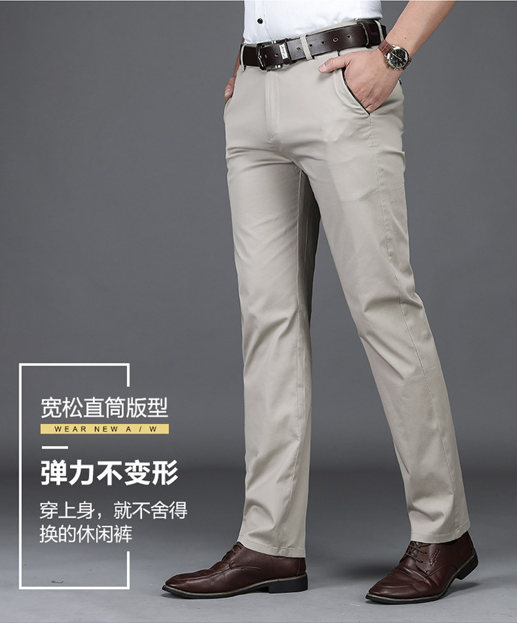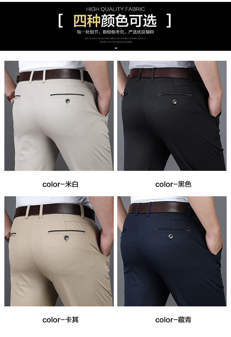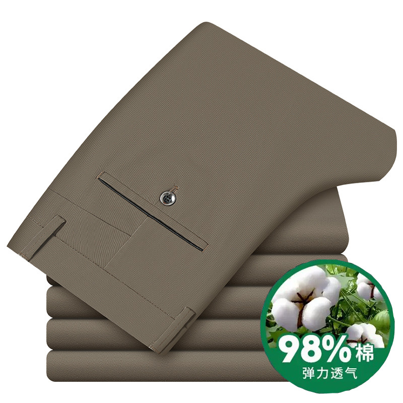 春夏纯棉直筒休闲裤高腰宽松薄款裤弹力商务免烫男裤中青年正装裤
