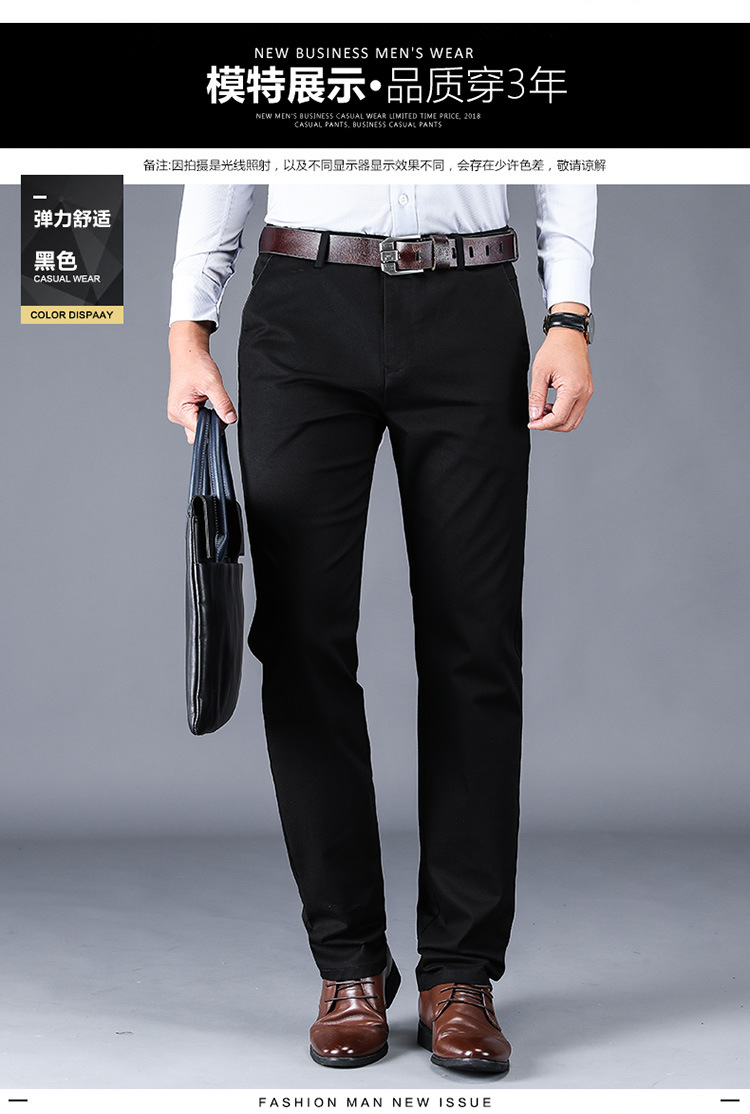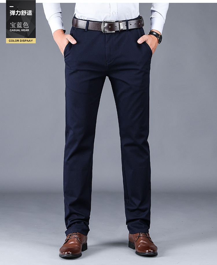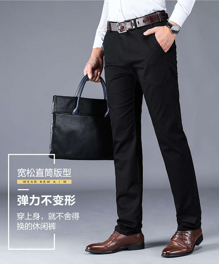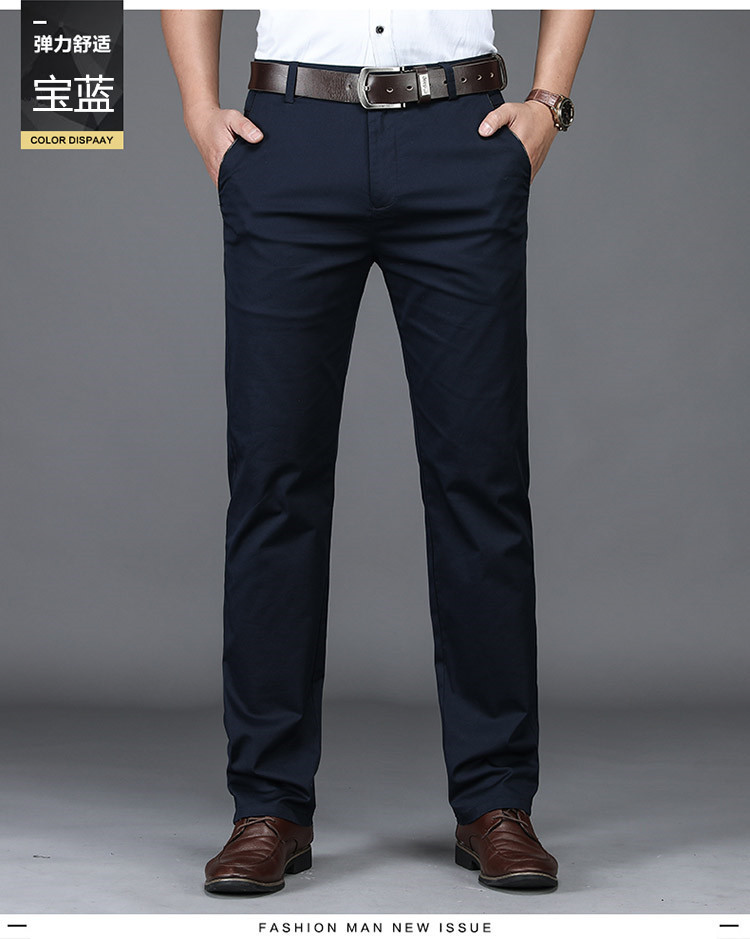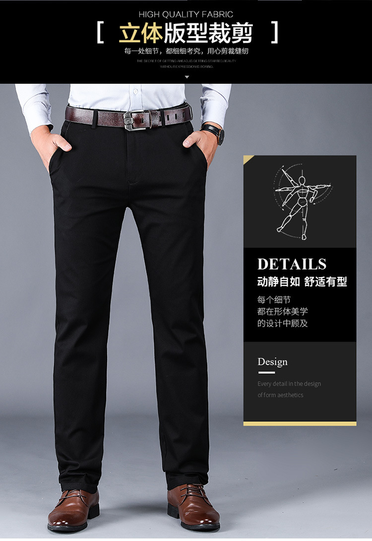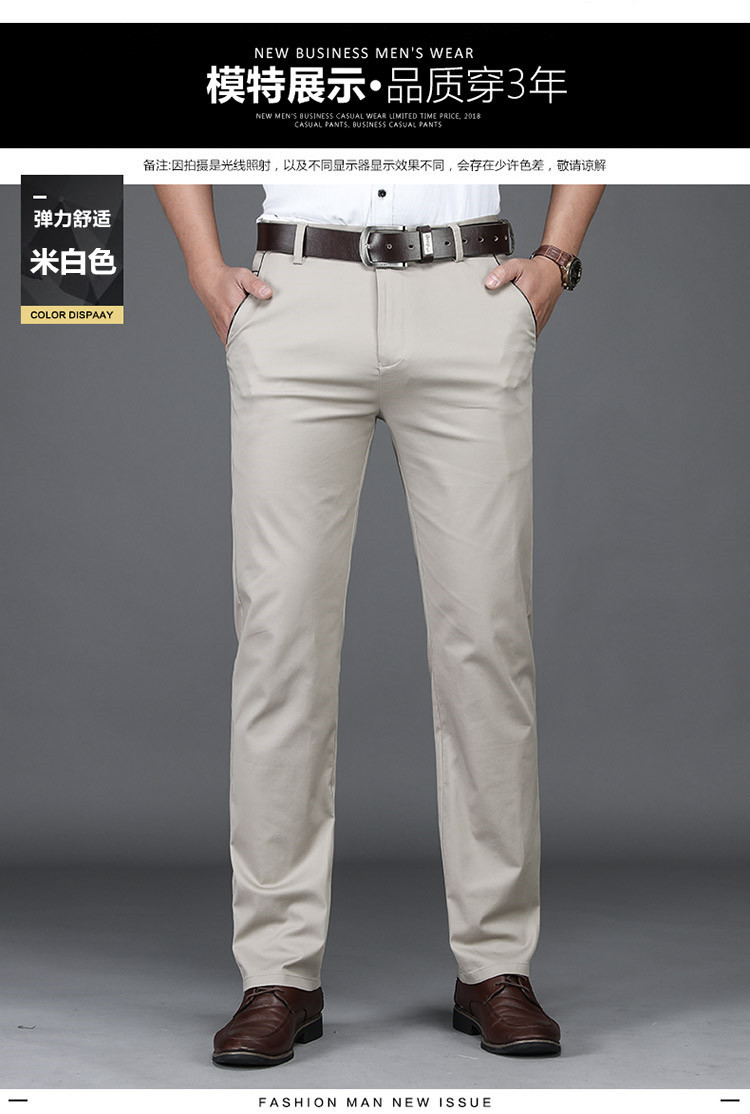 春夏纯棉直筒休闲裤高腰宽松薄款裤弹力商务免烫男裤中青年正装裤
