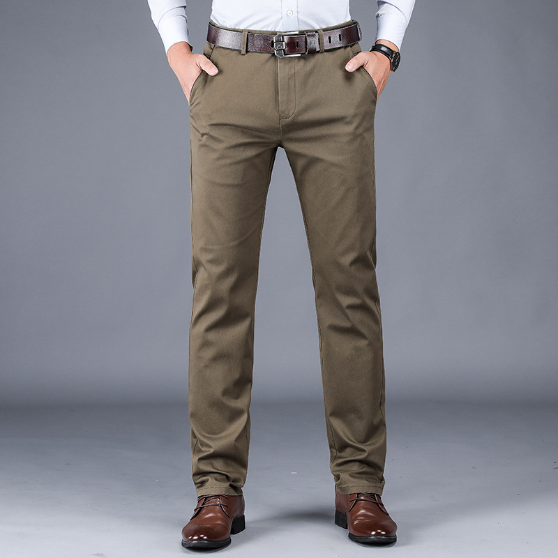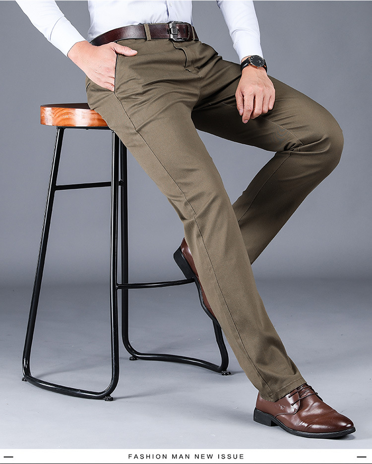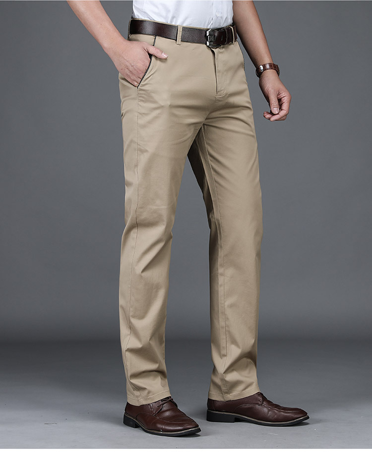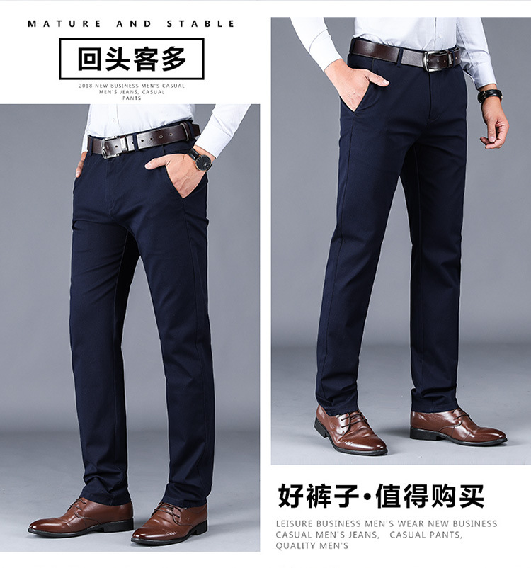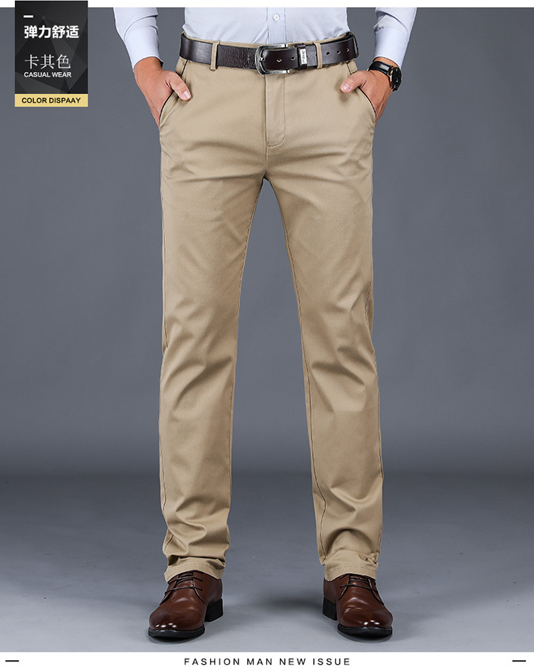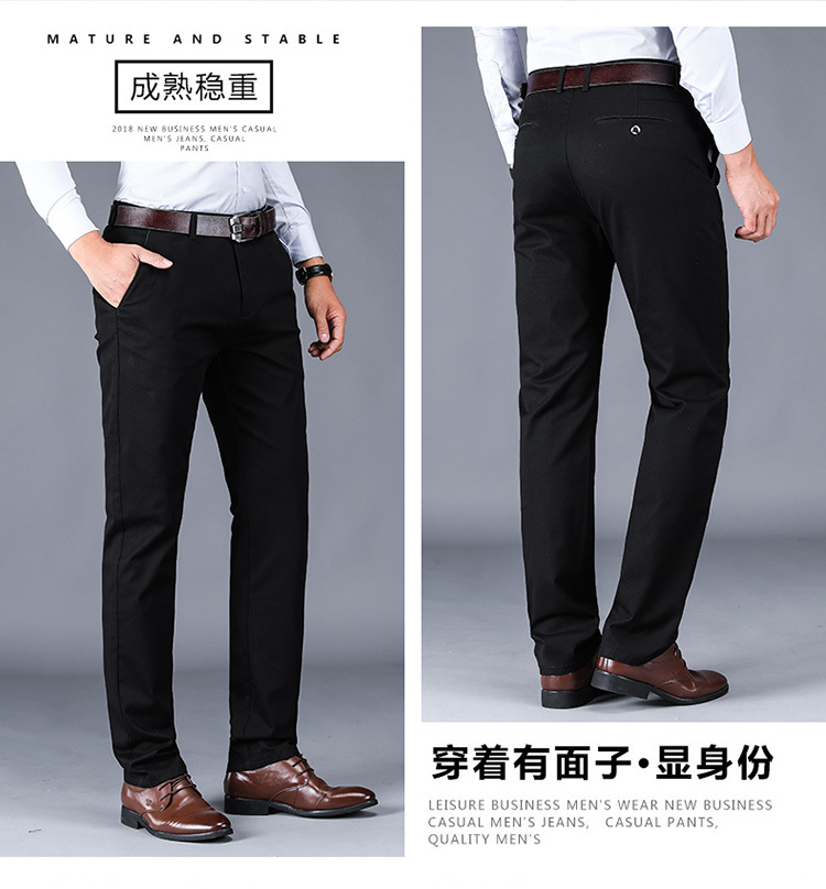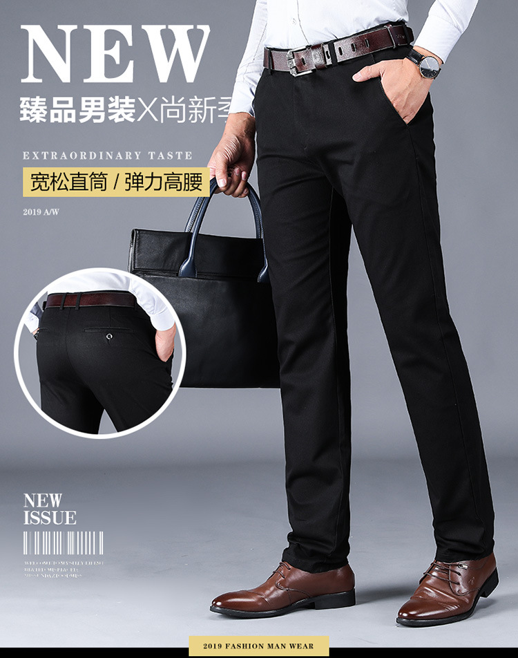 春夏纯棉直筒休闲裤高腰宽松薄款裤弹力商务免烫男裤中青年正装裤