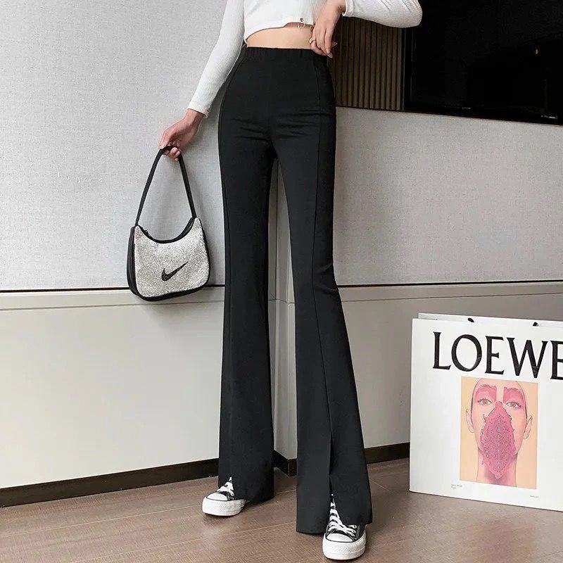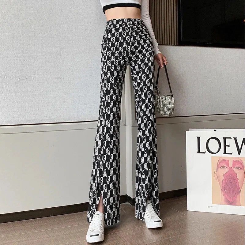 新款开叉休闲裤女字母高腰显瘦坠感冰丝阔腿裤洋气潮春夏ins长裤