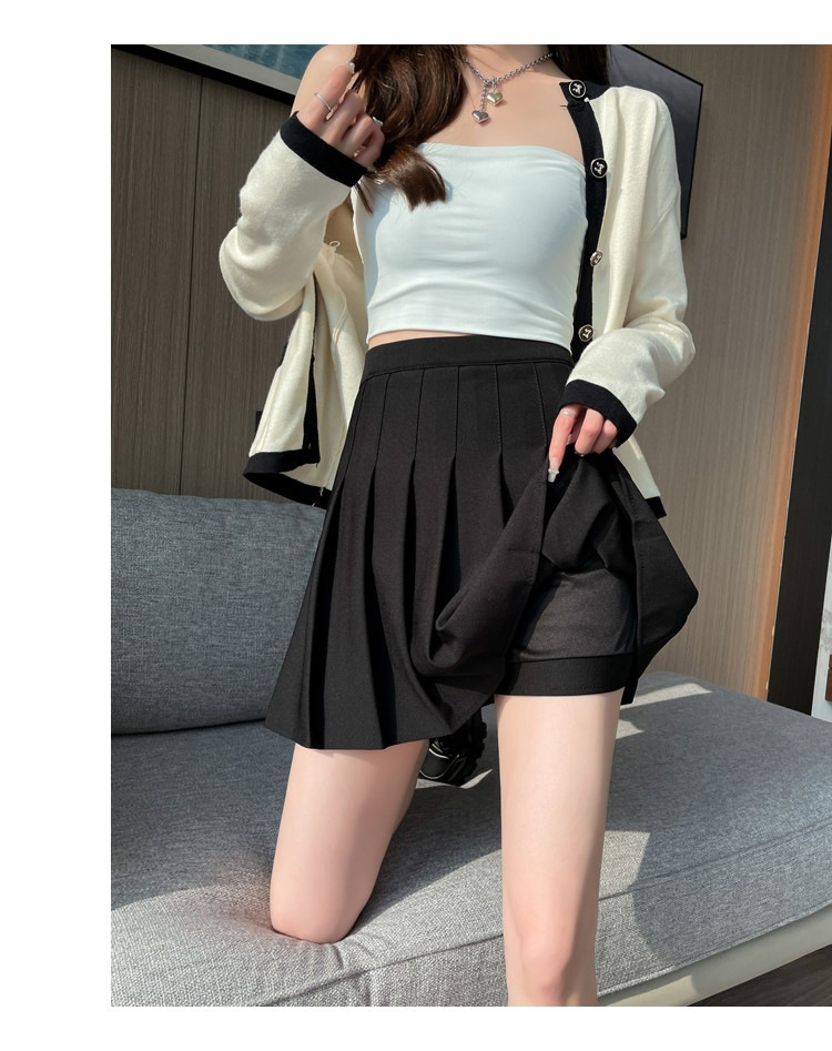 百褶裙JK制服裙【松紧腰+加长+安全裤+拉链】半身裙春夏短裙秋冬