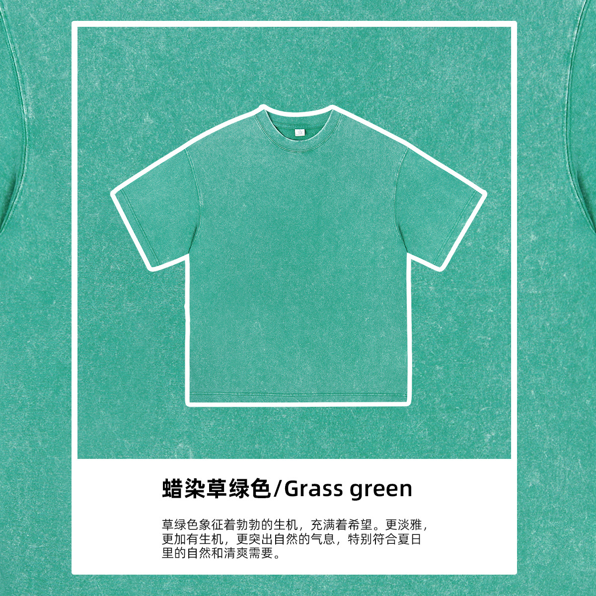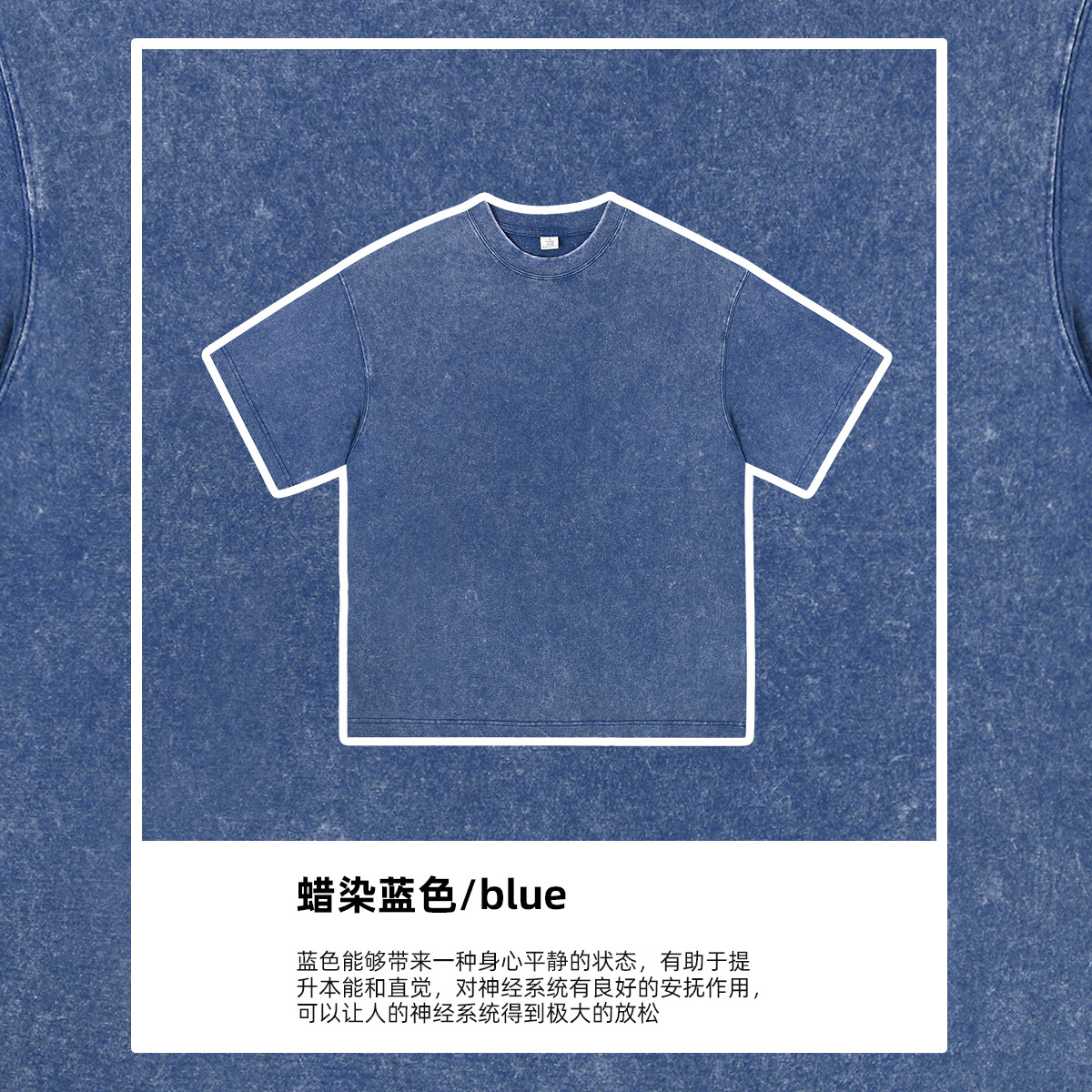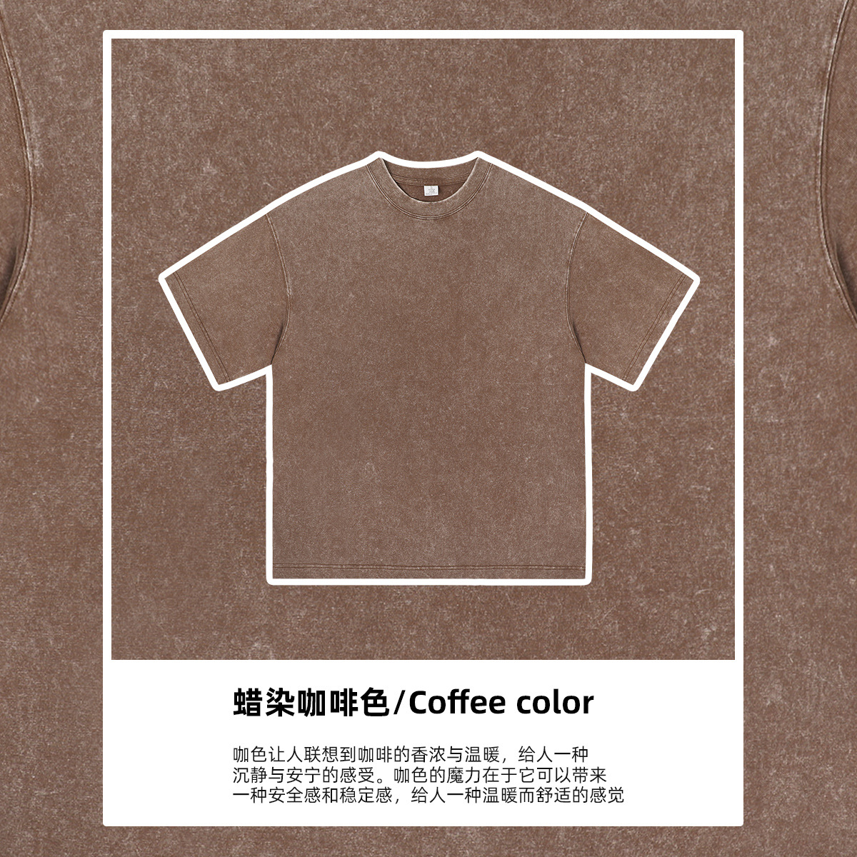 重磅230g纯棉夏男女大码情侣水洗做旧美式复古宽松短袖t恤落肩款