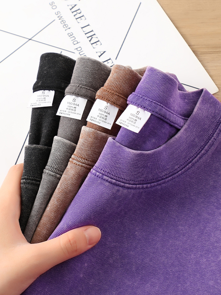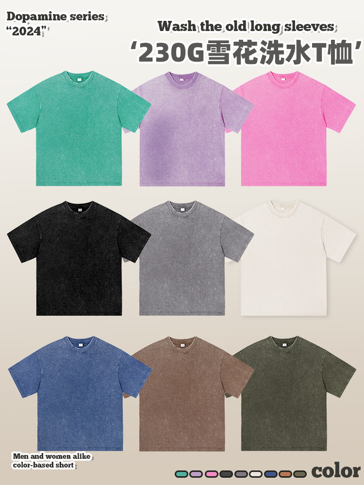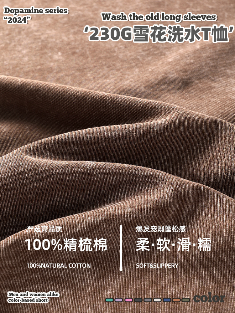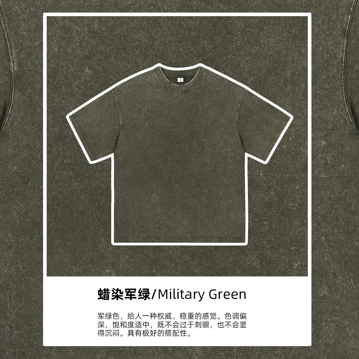重磅230g纯棉夏男女大码情侣水洗做旧美式复古宽松短袖t恤落肩款