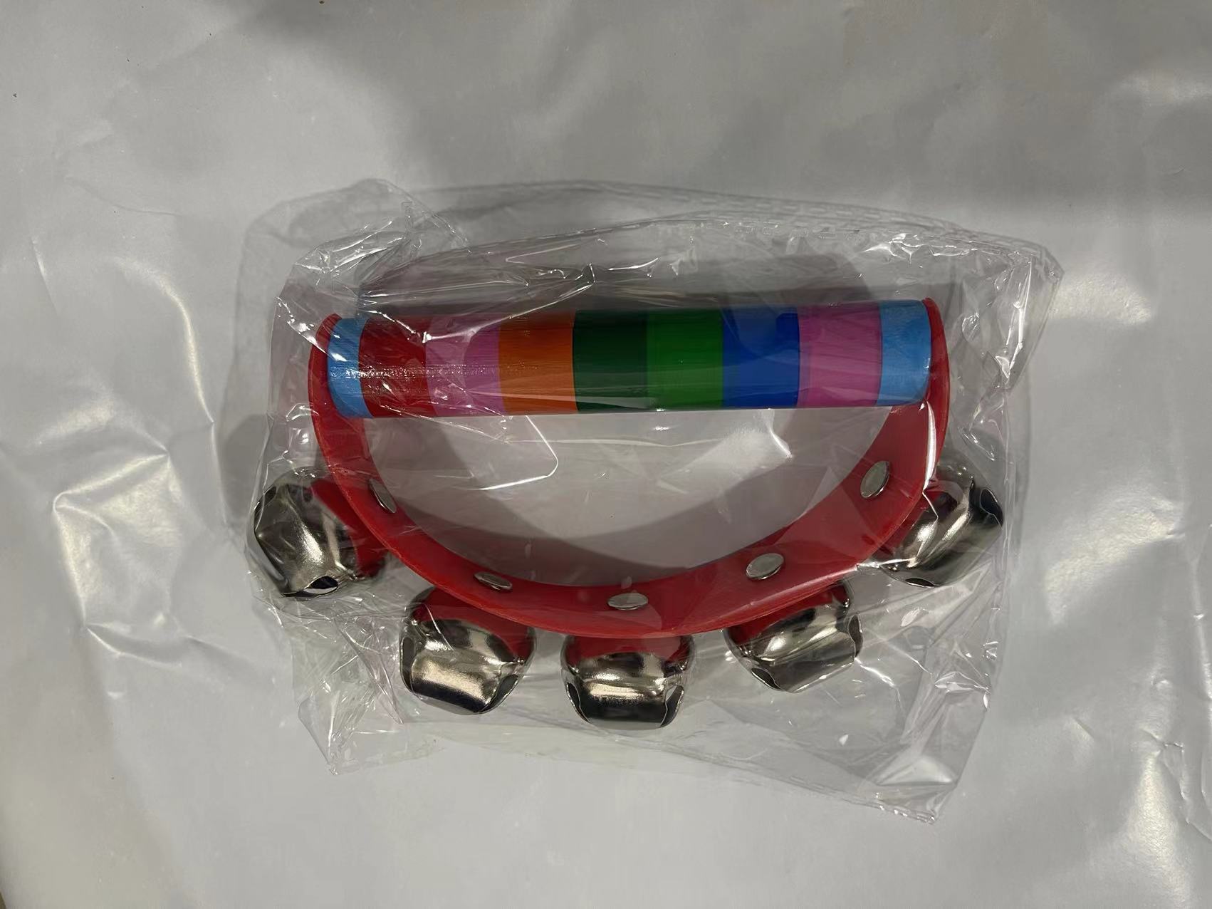 木质皮五铃半圆手摇铃 奥尔夫音乐早教乐器玩具 婴幼儿教具握铃