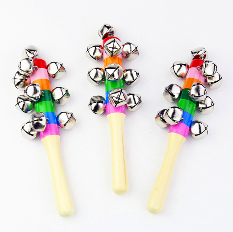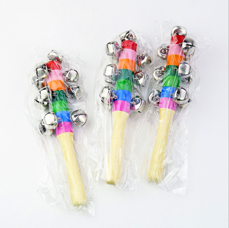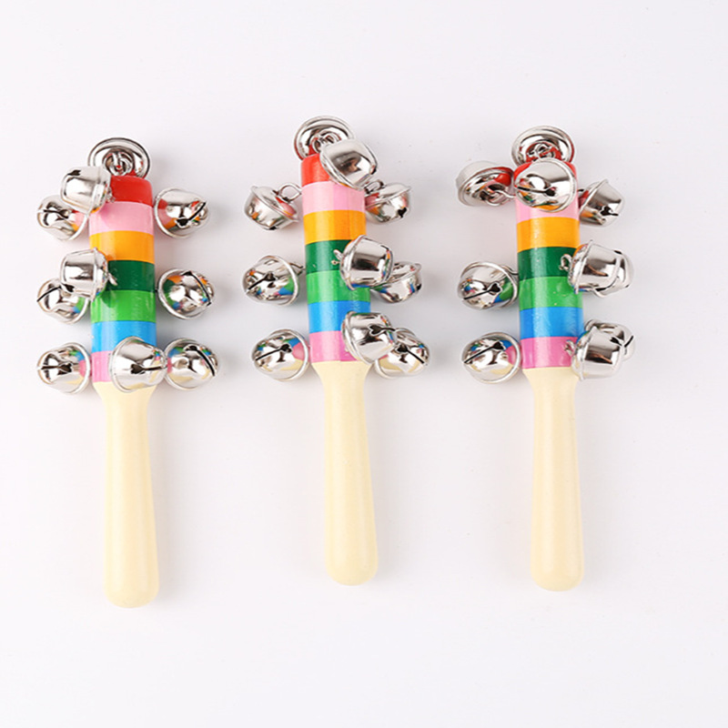 木制彩虹手摇铃 七彩摇铃 彩色一字 十字摇铃婴儿幼益智早教玩具