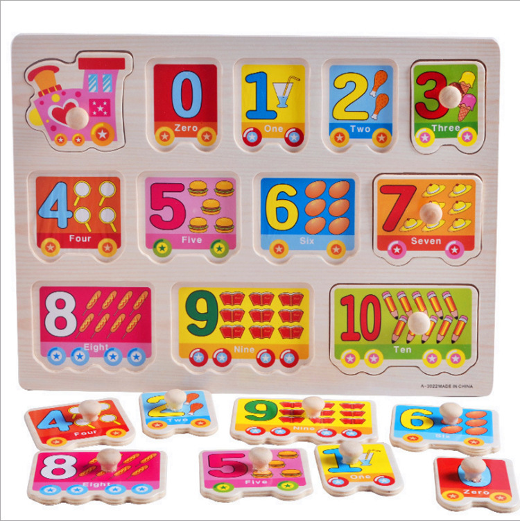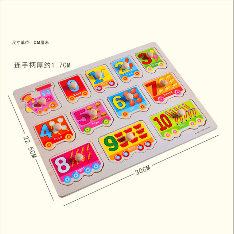 厂家直销木制认知板手抓板数字字母水果几何形状木钉抓手拼图拼版