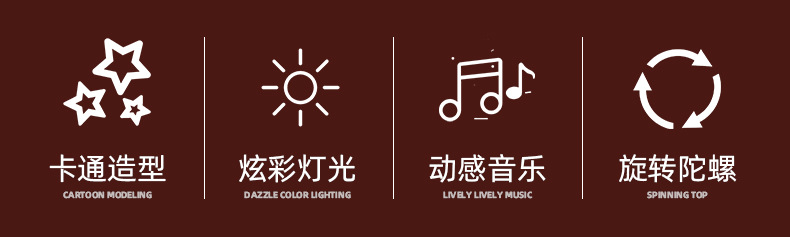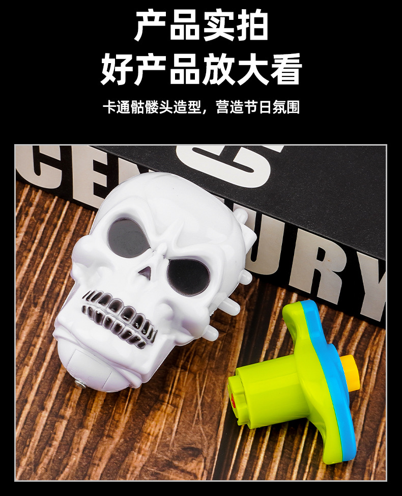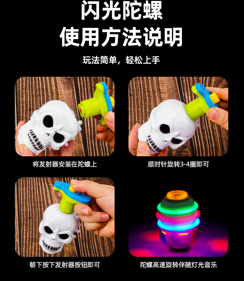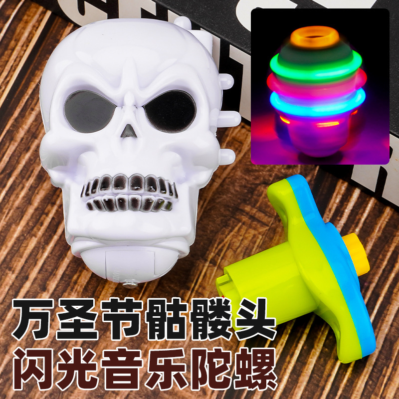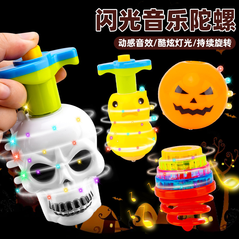跨境儿童轱辘头灯光音乐陀螺玩具万圣节复活节搞怪玩具礼品批发