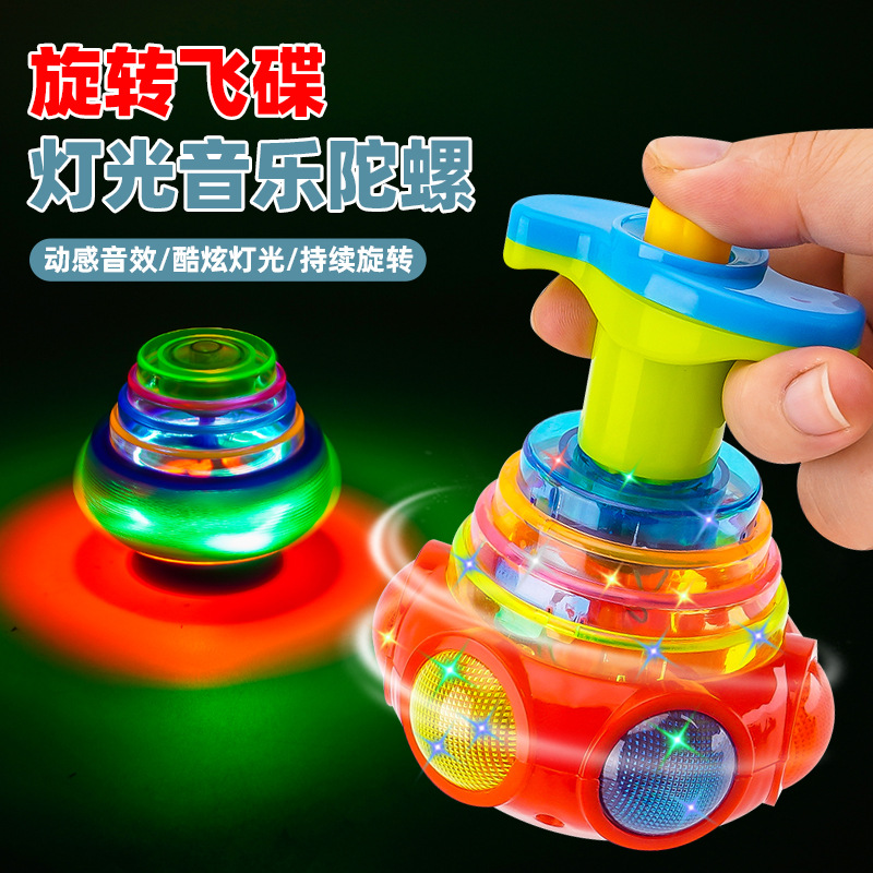 趣味儿童卡通UFO灯光音乐陀螺宝宝玩具陀螺地摊夜市玩具批发跨境