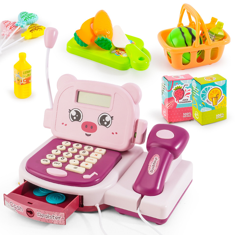 网红儿童多功能收银机卡通超市收银台女孩过家家玩具3-6礼品批发