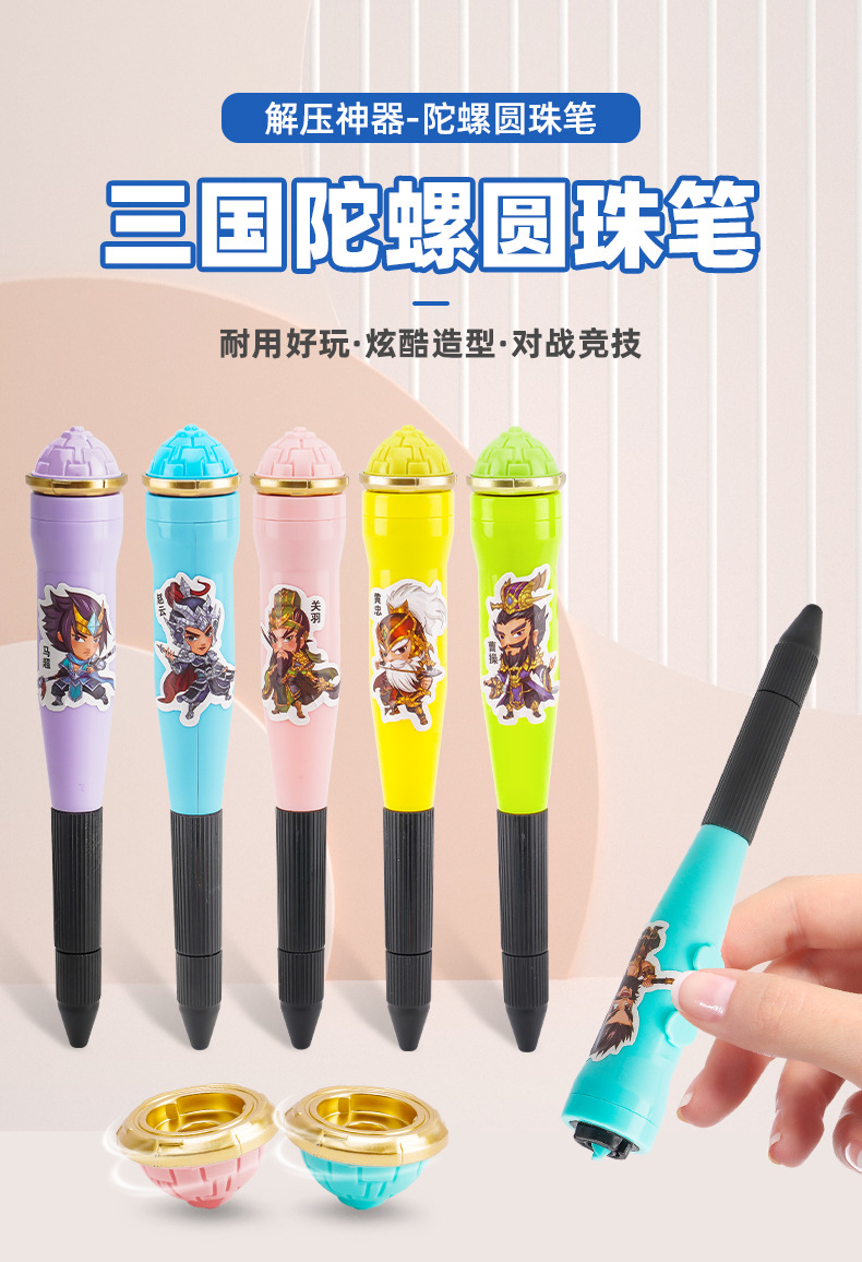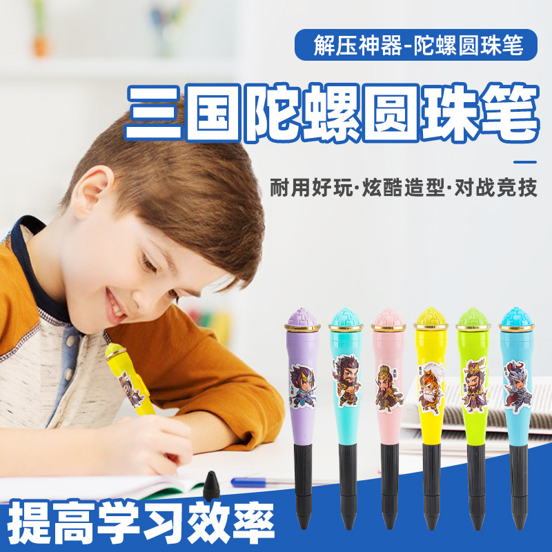 网红儿童陀螺玩具卡通三国圆珠笔学校士多店超市地摊玩具批发礼品