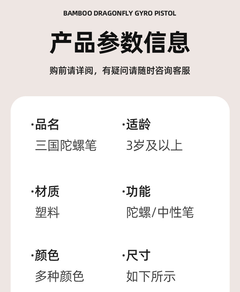 | three kingdoms gyro ballpoint pen toy (random color single price)(三国陀螺圆珠笔玩具(颜色随机 单个价钱)) | USD $0.0 | 10378 set available |