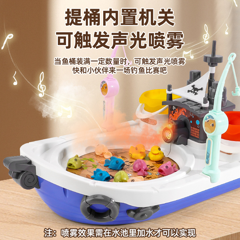 严选儿童喷雾钓鱼玩具海盗船钓鱼台捕鱼玩具电动旋转礼品玩具批发