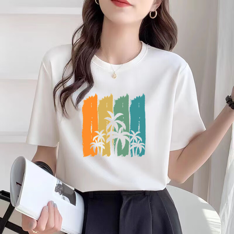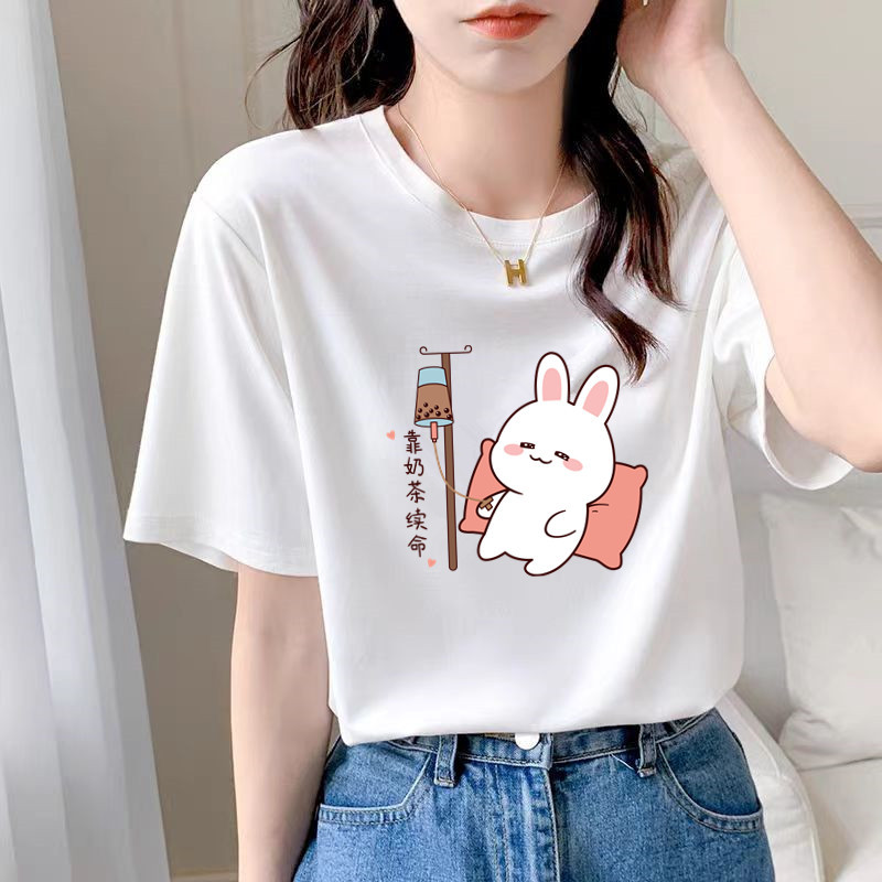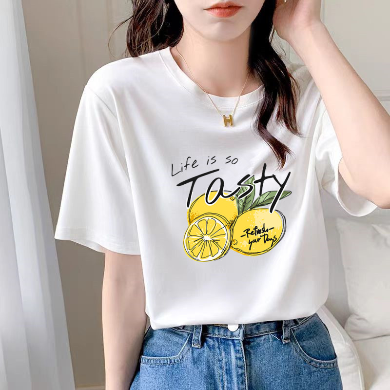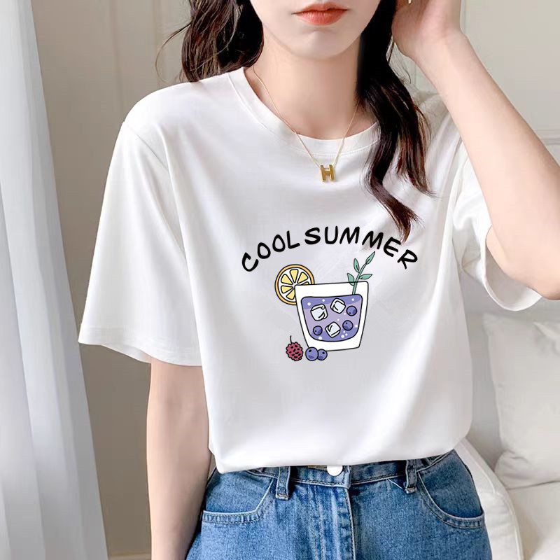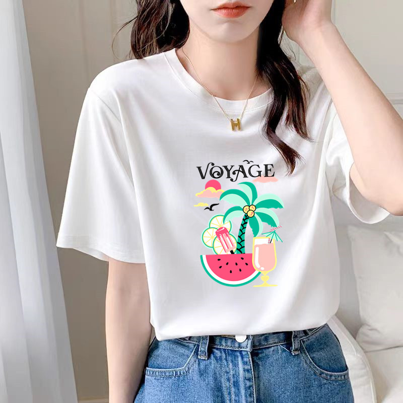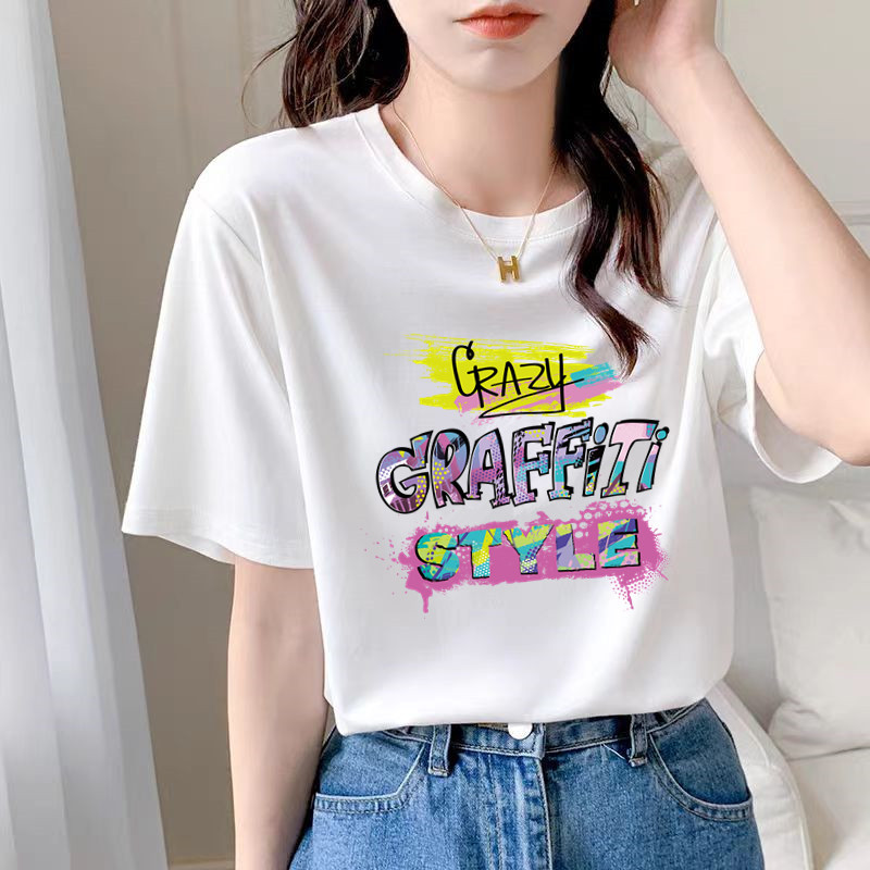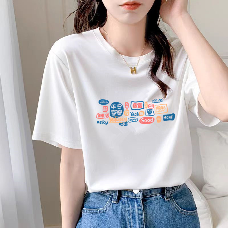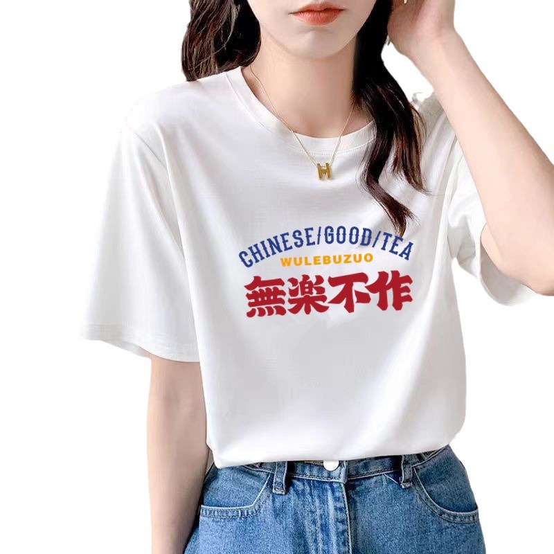 2024夏季女装短袖T恤纯棉宽松韩版ins百搭潮流印花上衣一件代发