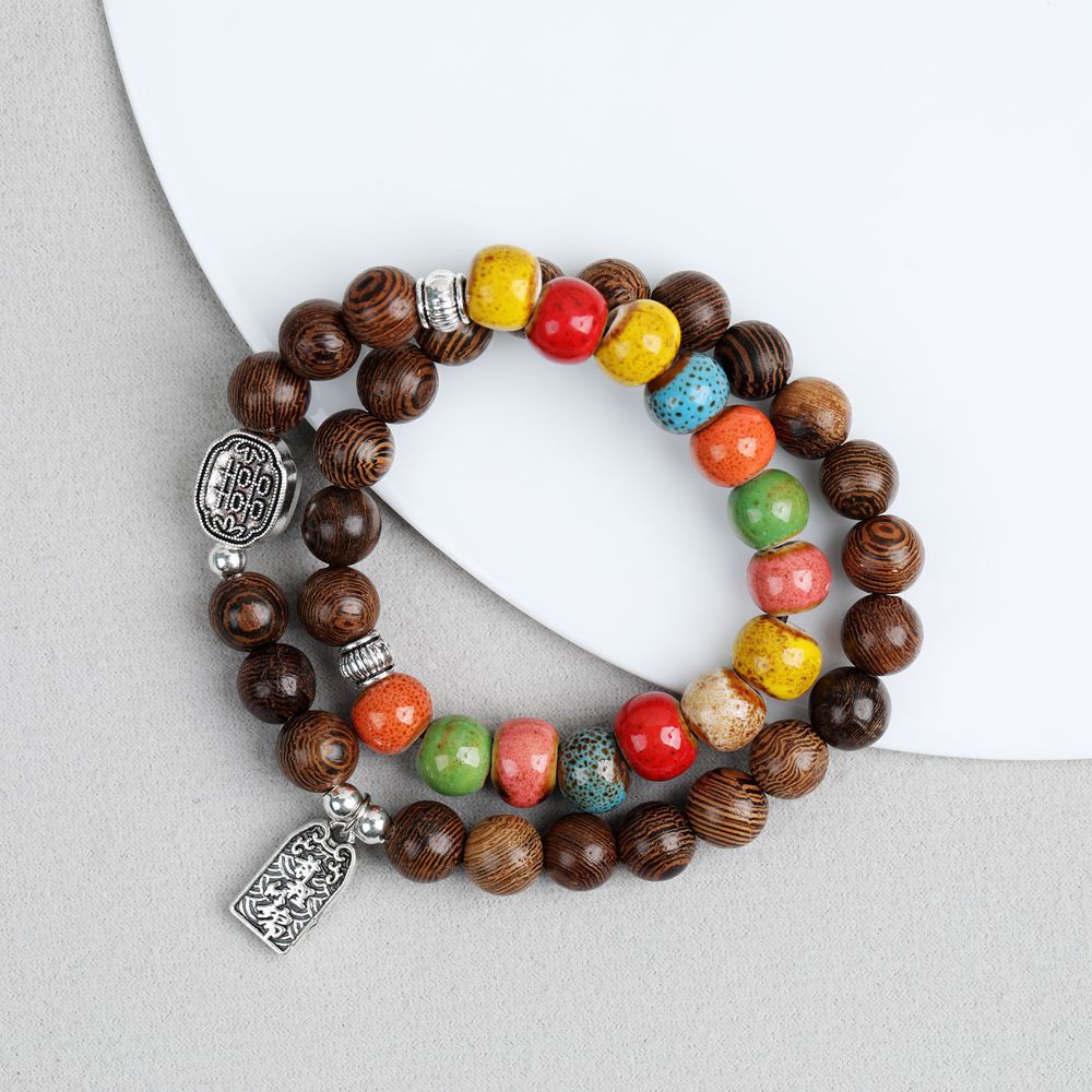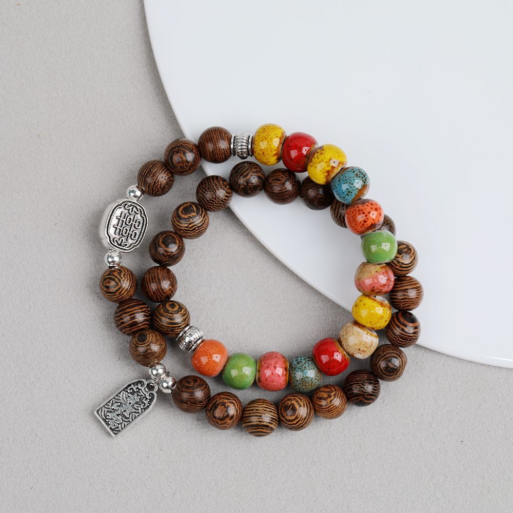 厂家货源合金陶瓷手链新中式手作百搭国风双圈陶瓷小众民族风手链