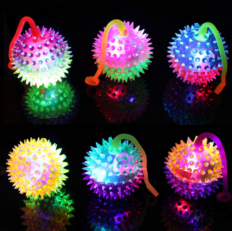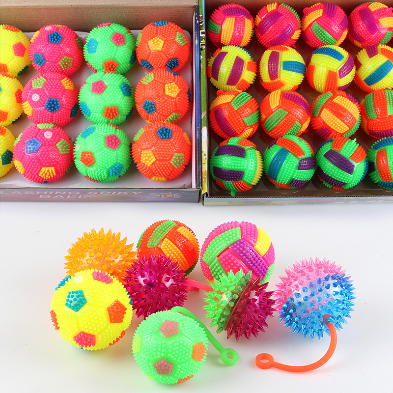 发光双色按摩球闪光弹跳排球 闪光水晶球叫声 带绳子卡通玩具批发