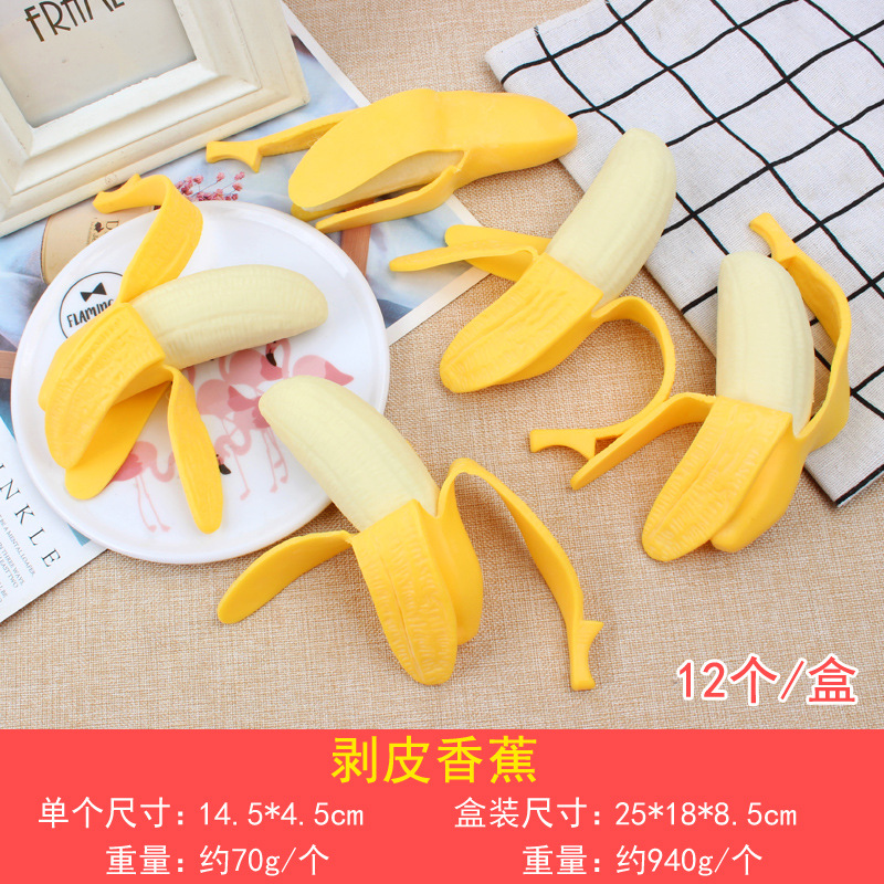 亚马逊爆款减压仿真香蕉捏捏乐新款剥皮香蕉发泄水果儿童玩具批发