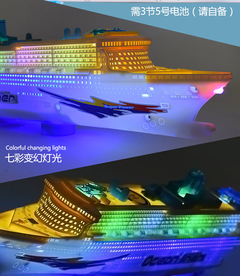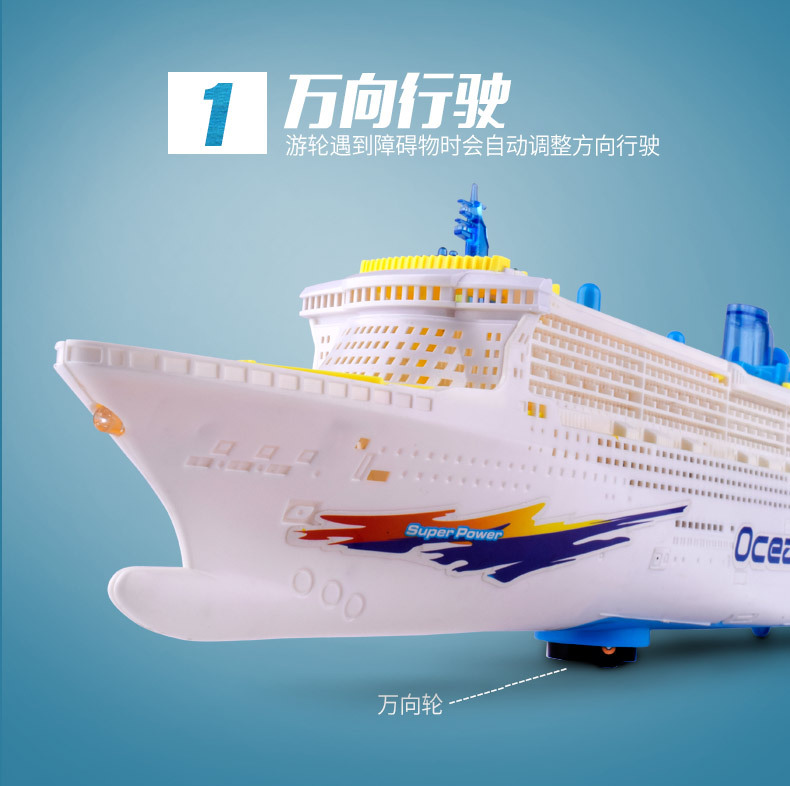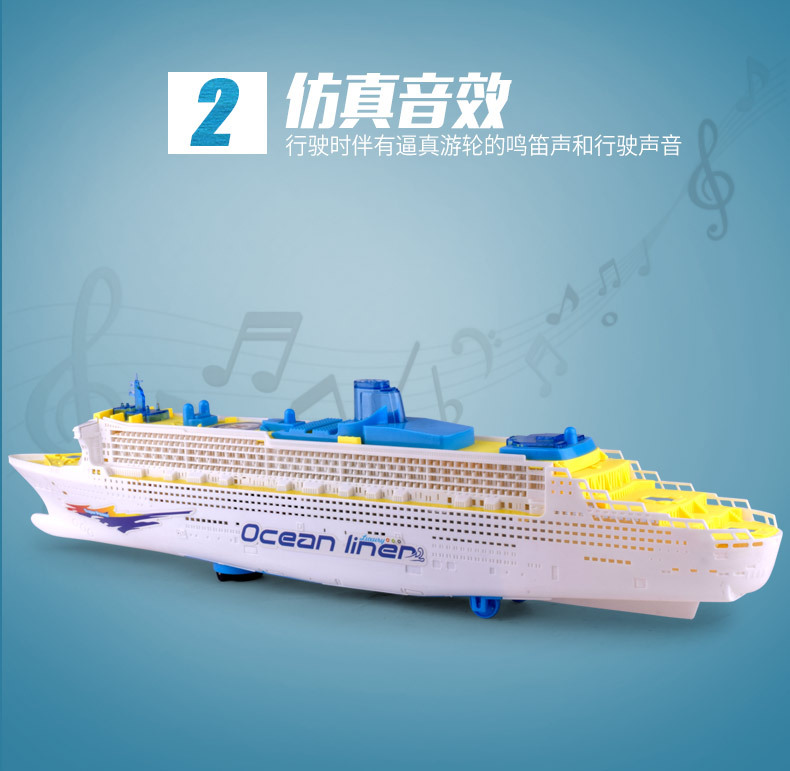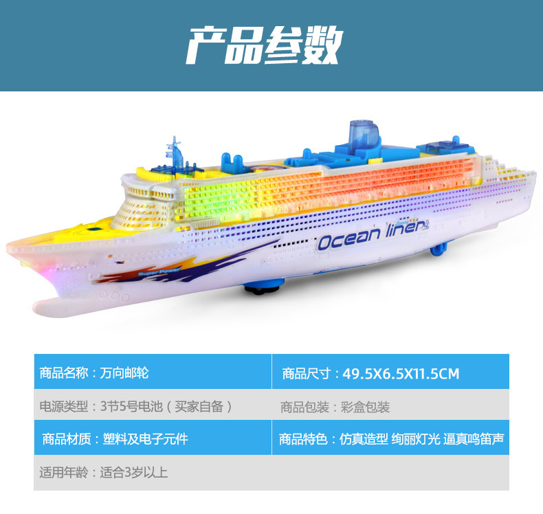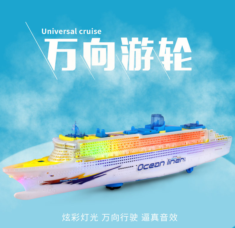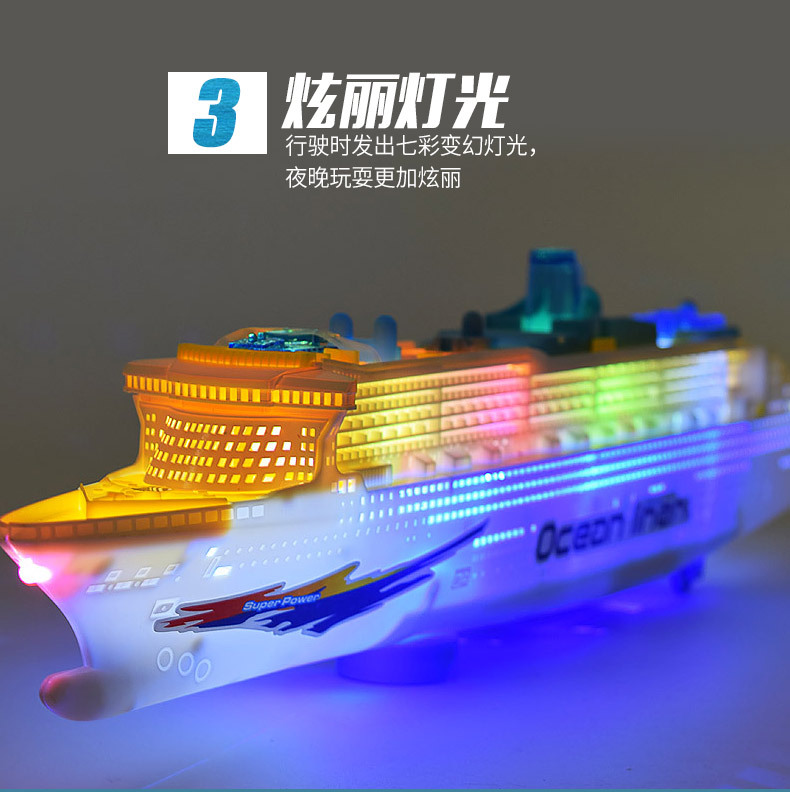 大号玩具船男孩万向游轮音乐游艇发光儿童电动灯光玩具批发摆地摊