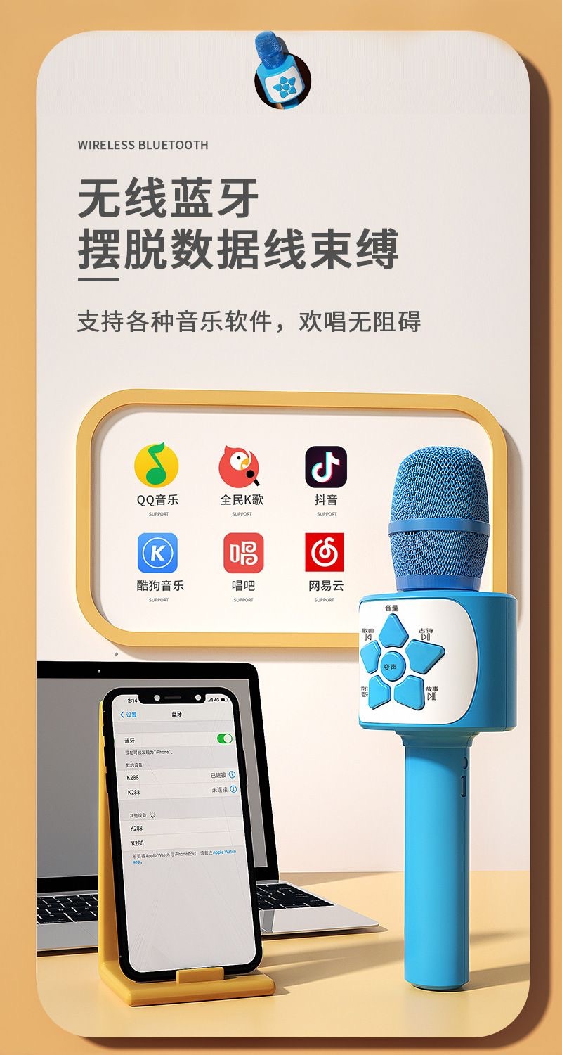 儿童小话筒宝宝玩具卡拉OK唱歌机音响一体手机麦克风无线蓝牙女孩