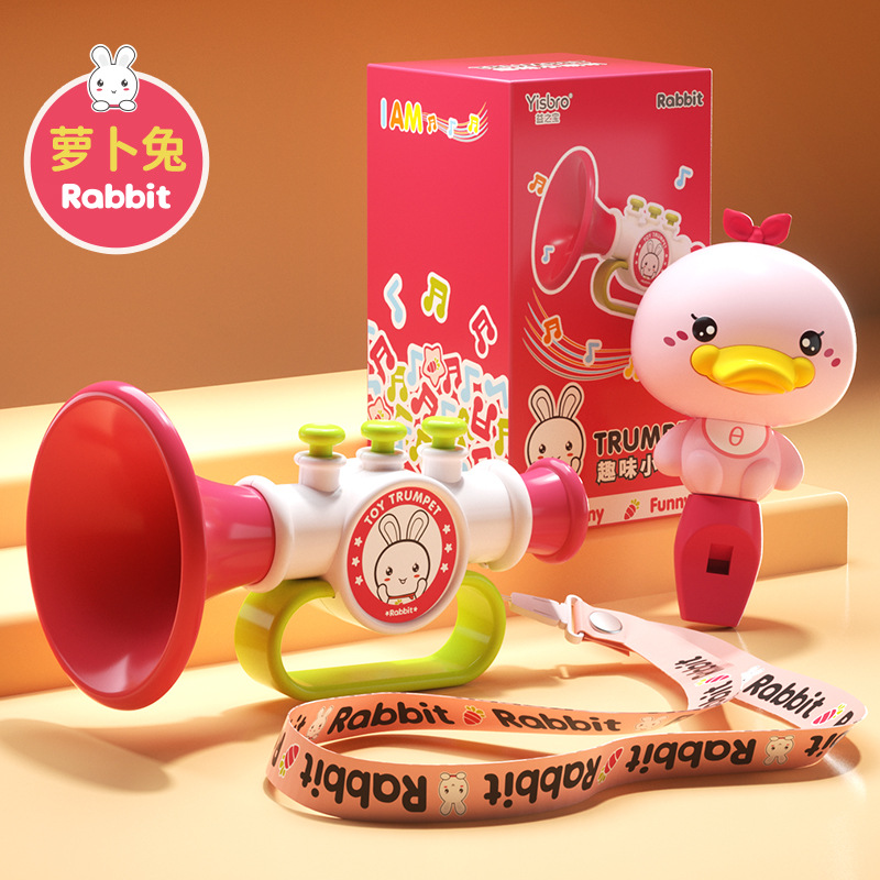 黄小鸭口哨儿童小喇叭玩具卡通挂绳吹吹乐小喇叭儿童乐器组合玩具
