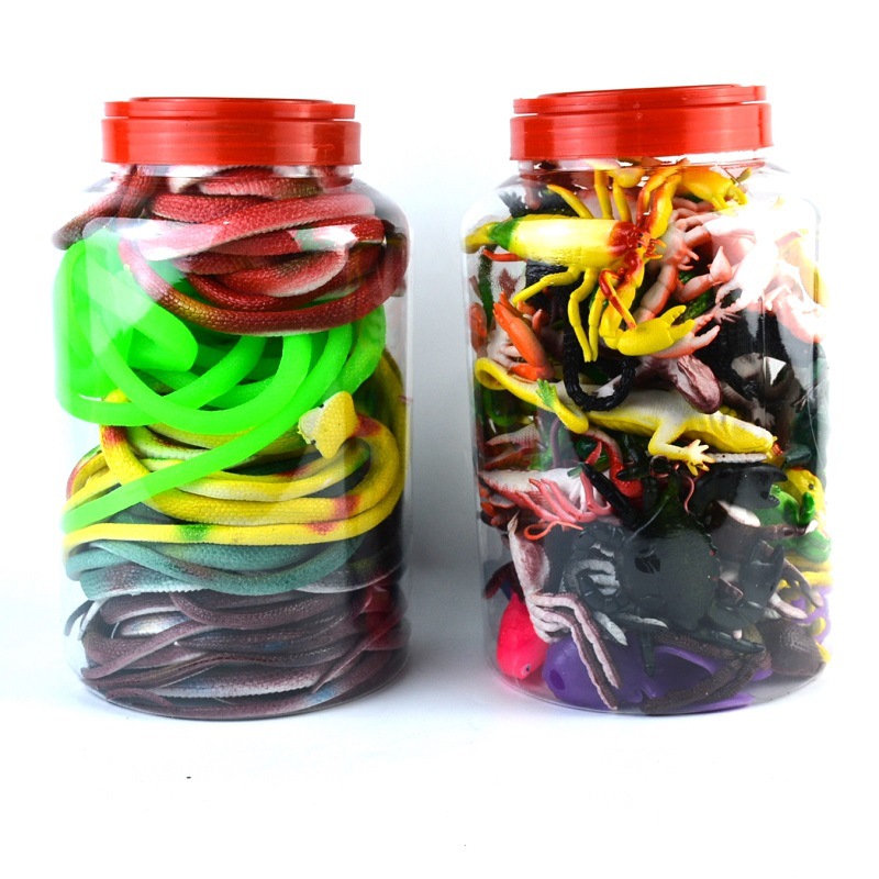 大桶装玩具蛇仿真动物75cm软胶蛇手提桶装软胶蛇蜥蜴厂家直销