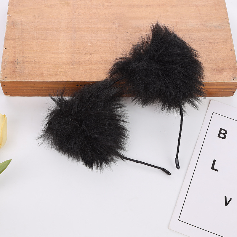 韩版毛绒狐狸猫耳朵头箍女工厂直供现货网红直播同款女仆发箍