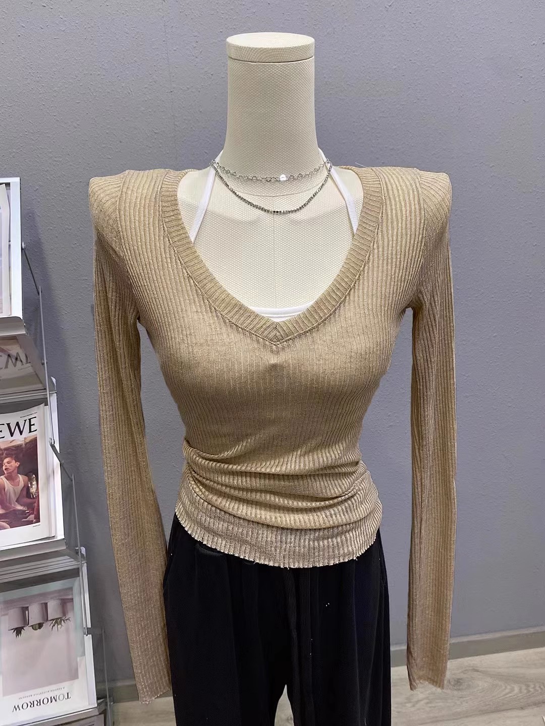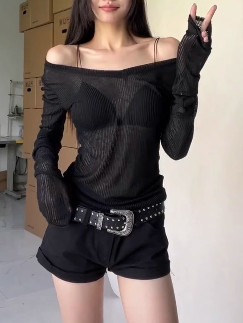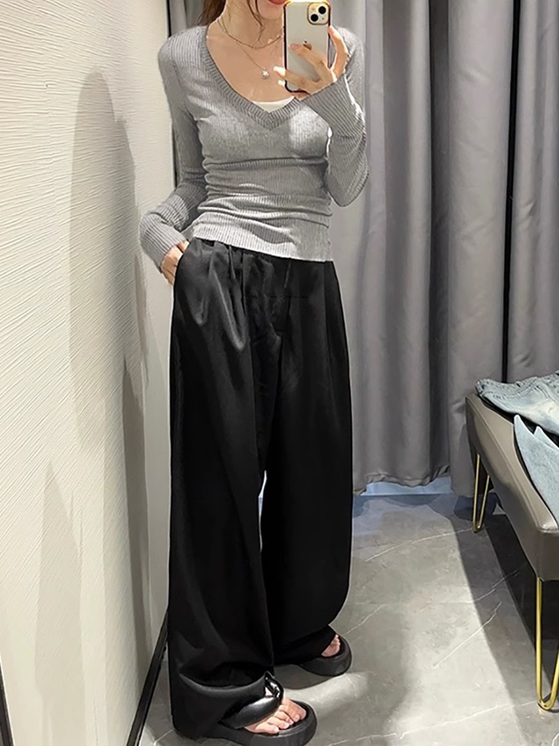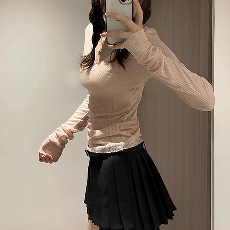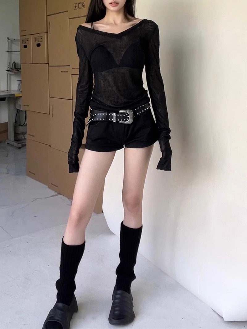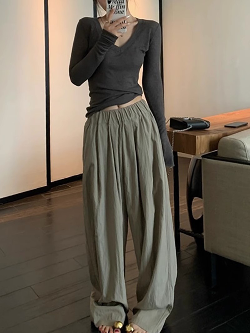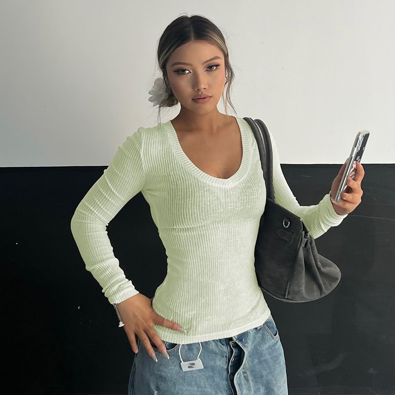 夏季美式V领长袖t恤女防晒罩衫慵懒感薄款空调衫内搭打底衫上衣女