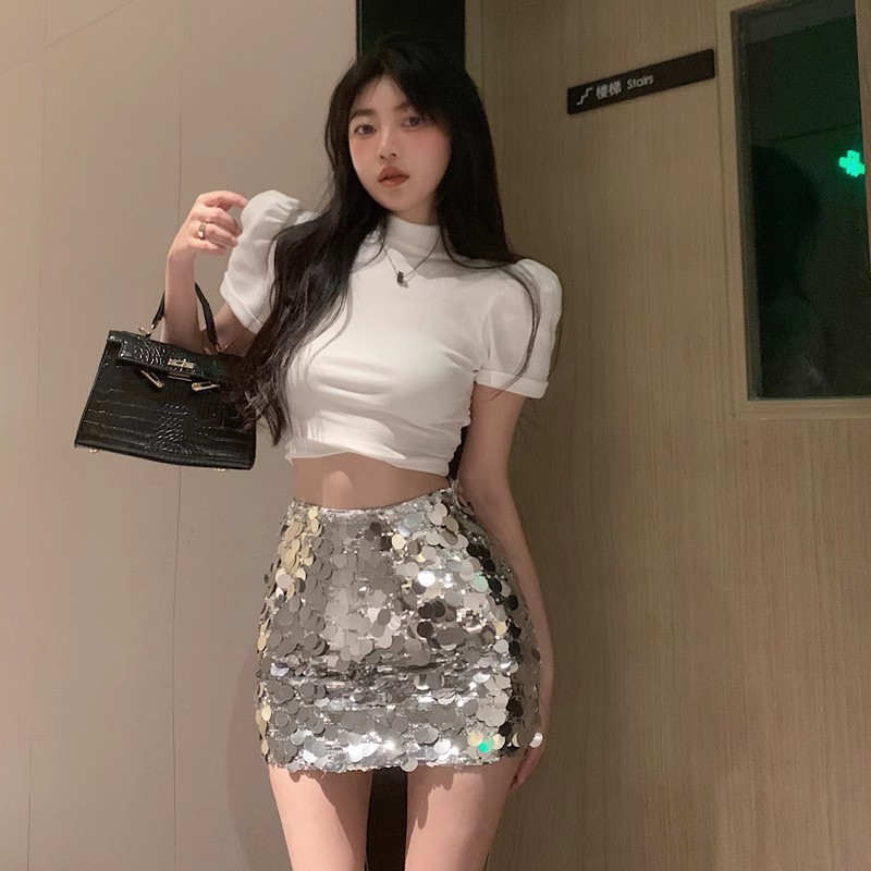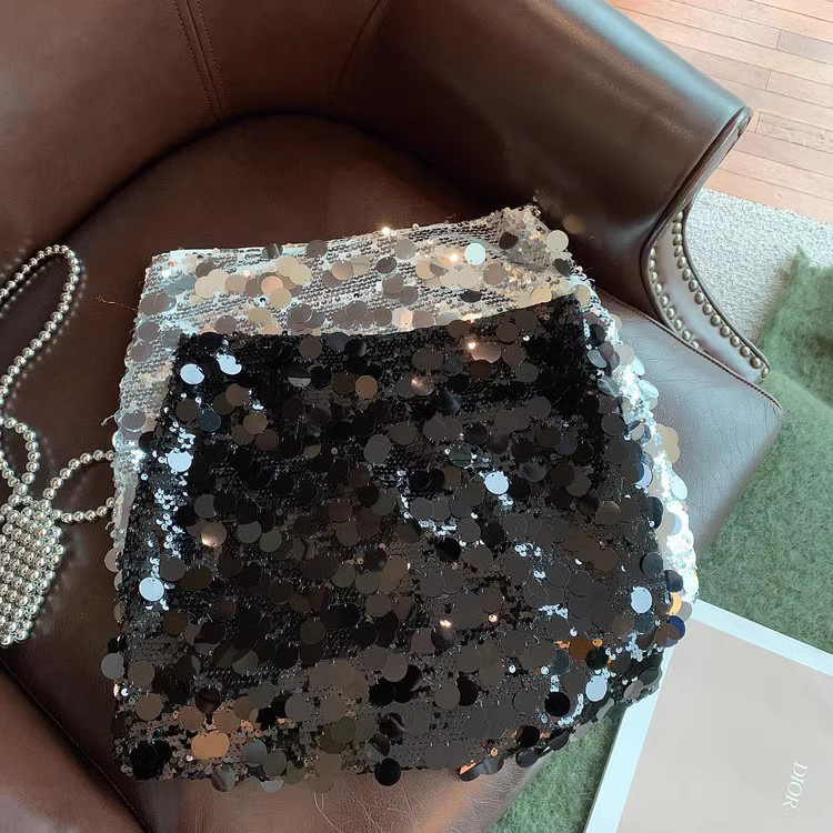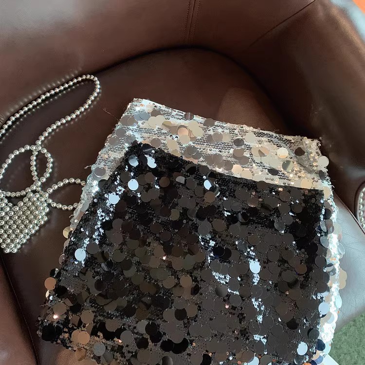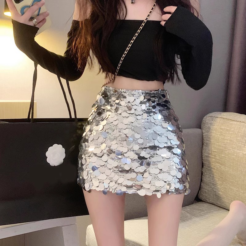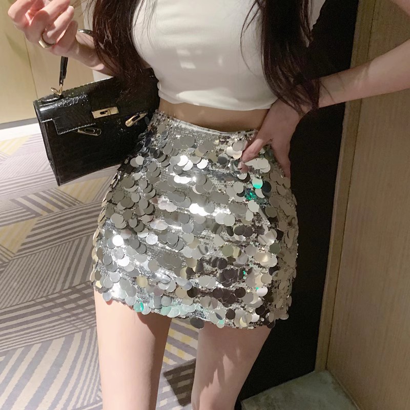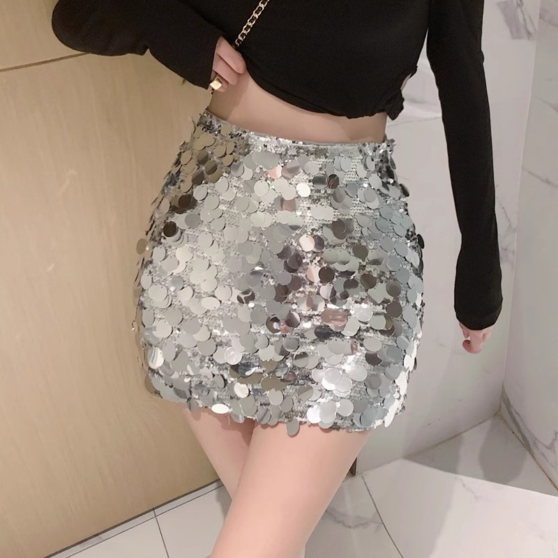 辣妹防走光短裙大码亮片半身裙女复古港风包臀a字裙设计感裙显瘦