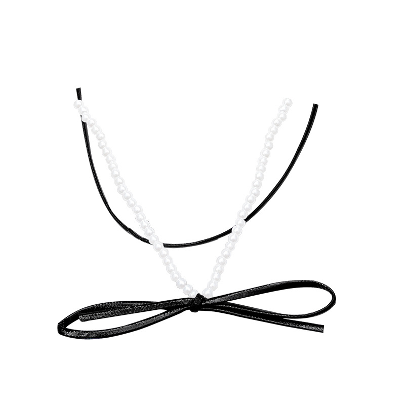 饰品甜酷辣妹风气质珍珠项链女颈链爆款小众双层叠戴蝴蝶结锁骨链