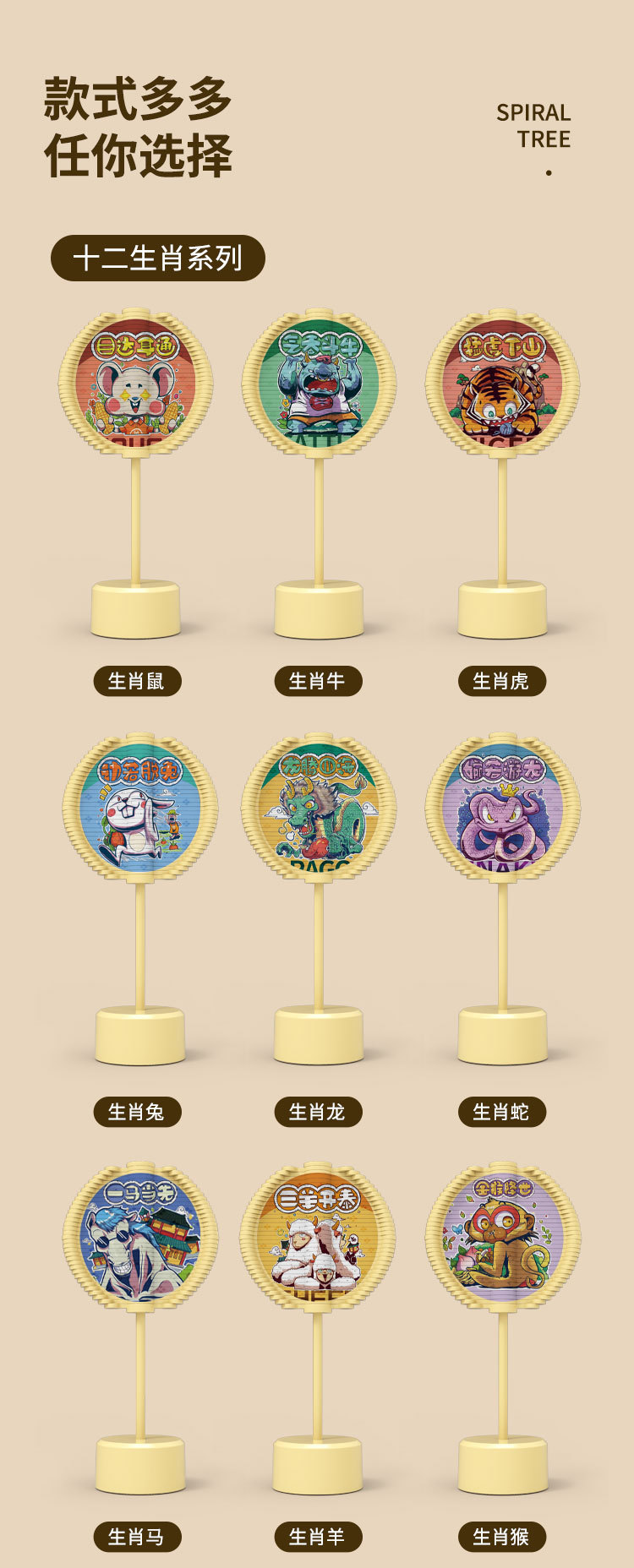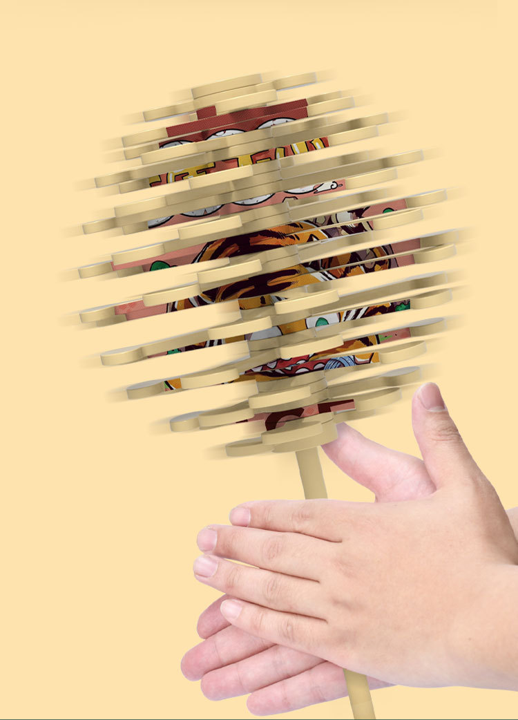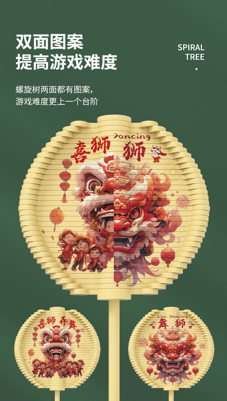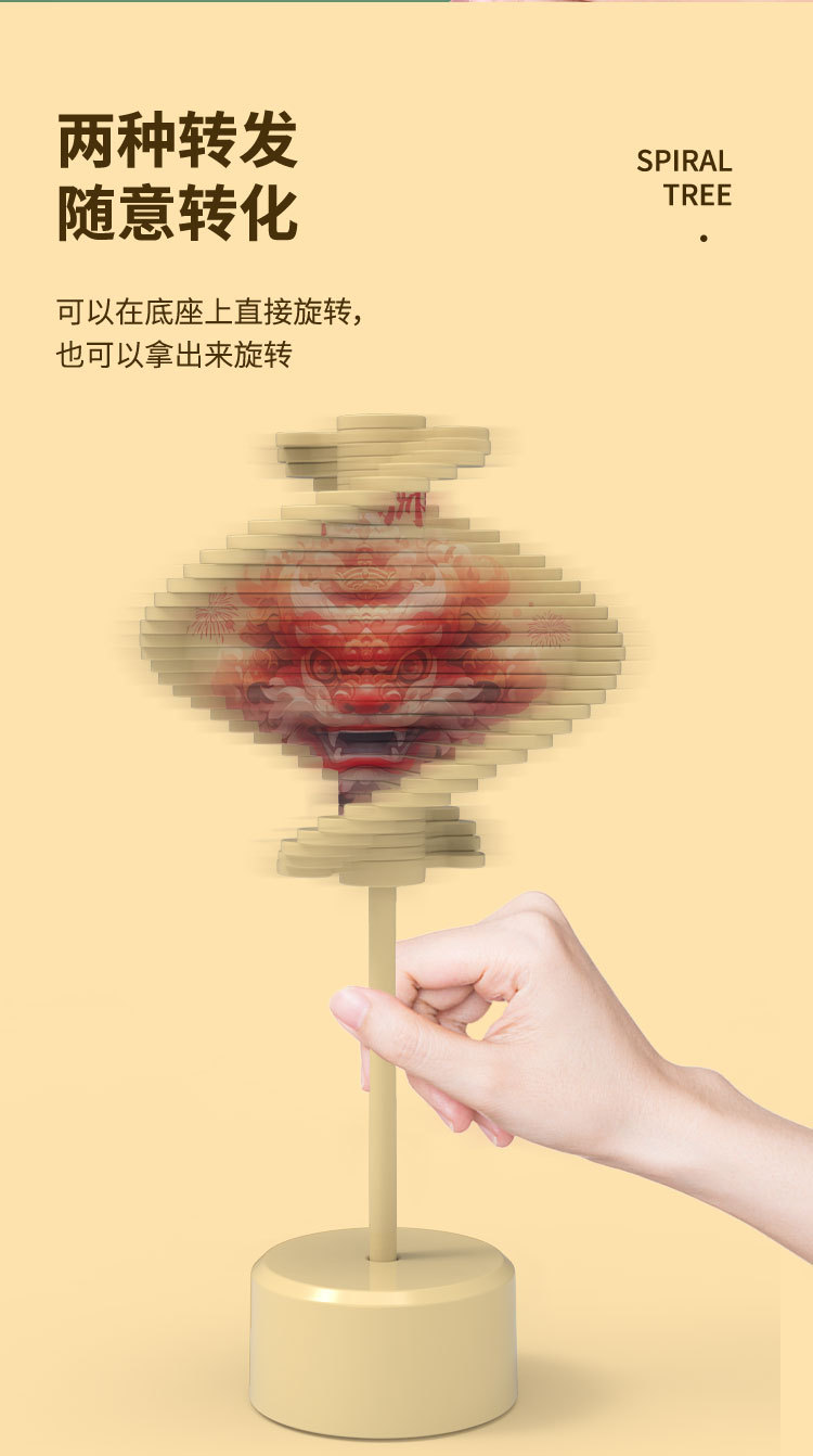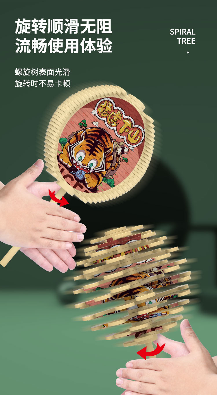 新旋转棒棒糖转转乐儿童卡通斐波那契螺旋树生肖国潮变脸脸谱玩具
