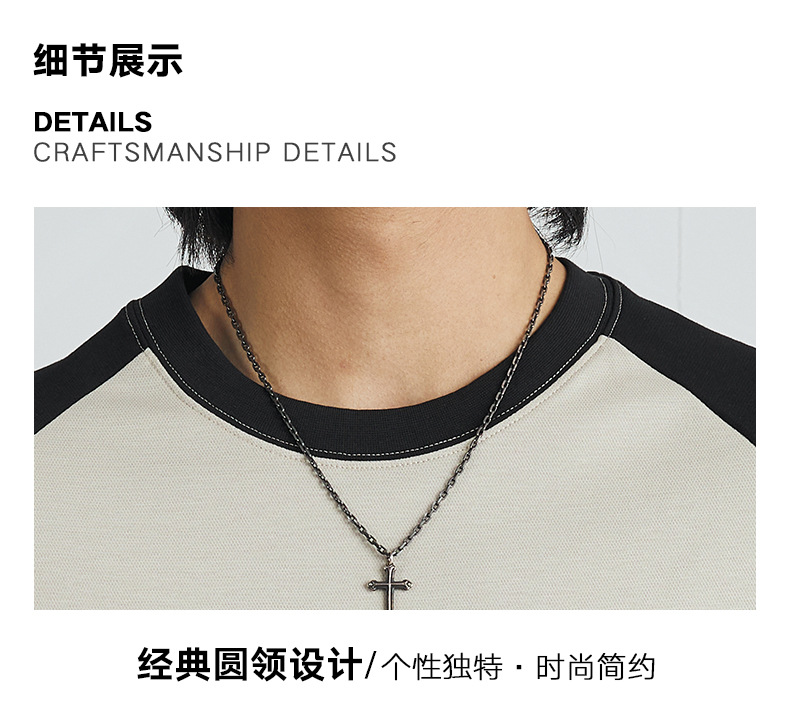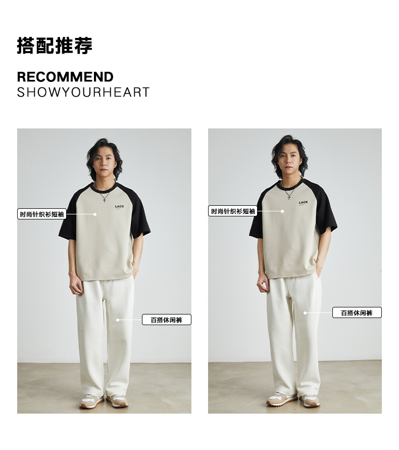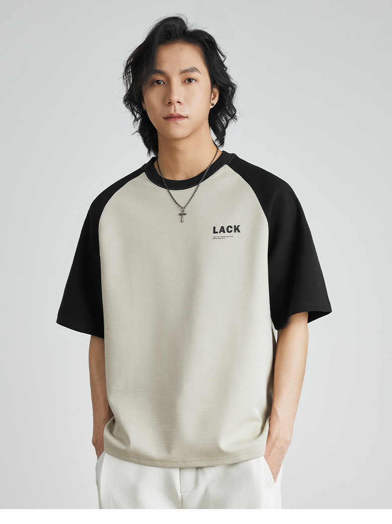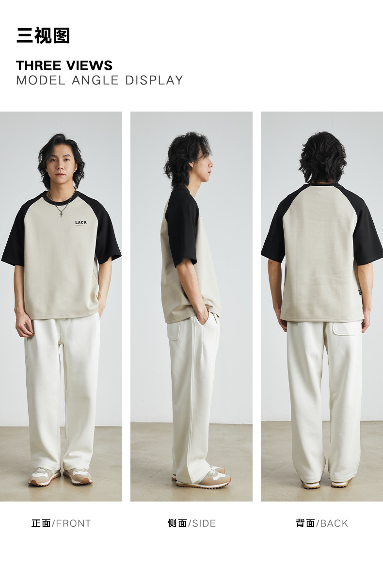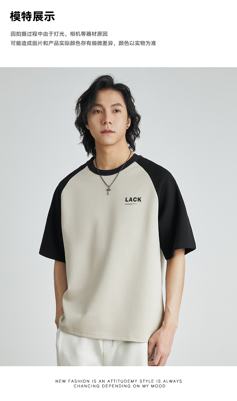 亦止男装日系撞色圆领T恤男短袖夏季复古休闲印花宽松插肩袖体恤