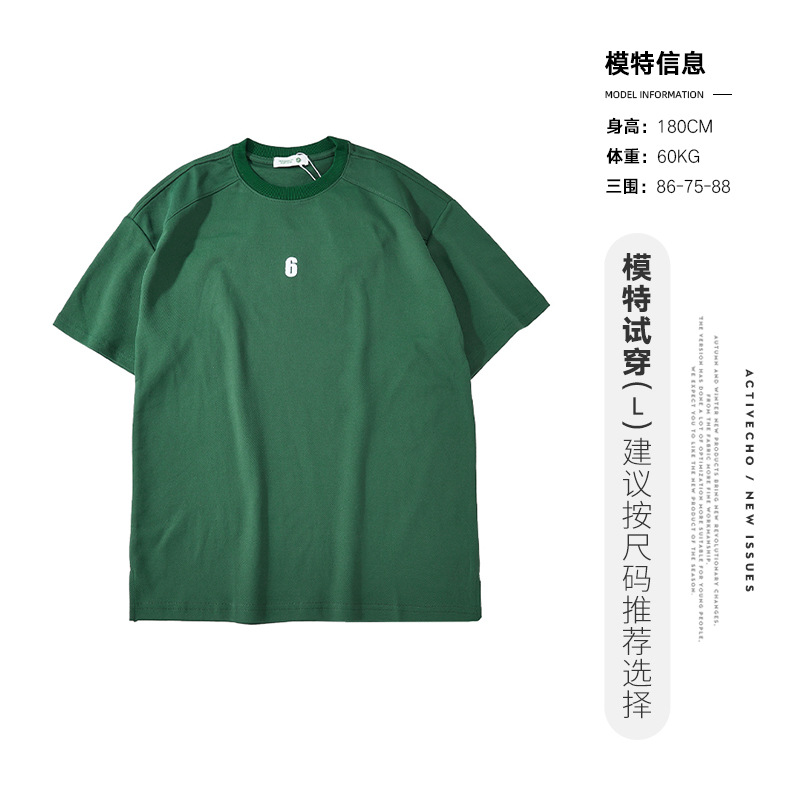 亦止男装250克美式重磅短袖T恤男夏季复古做旧钢印印花纯棉打底衫