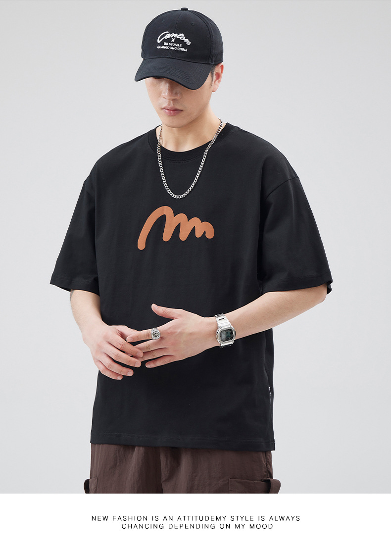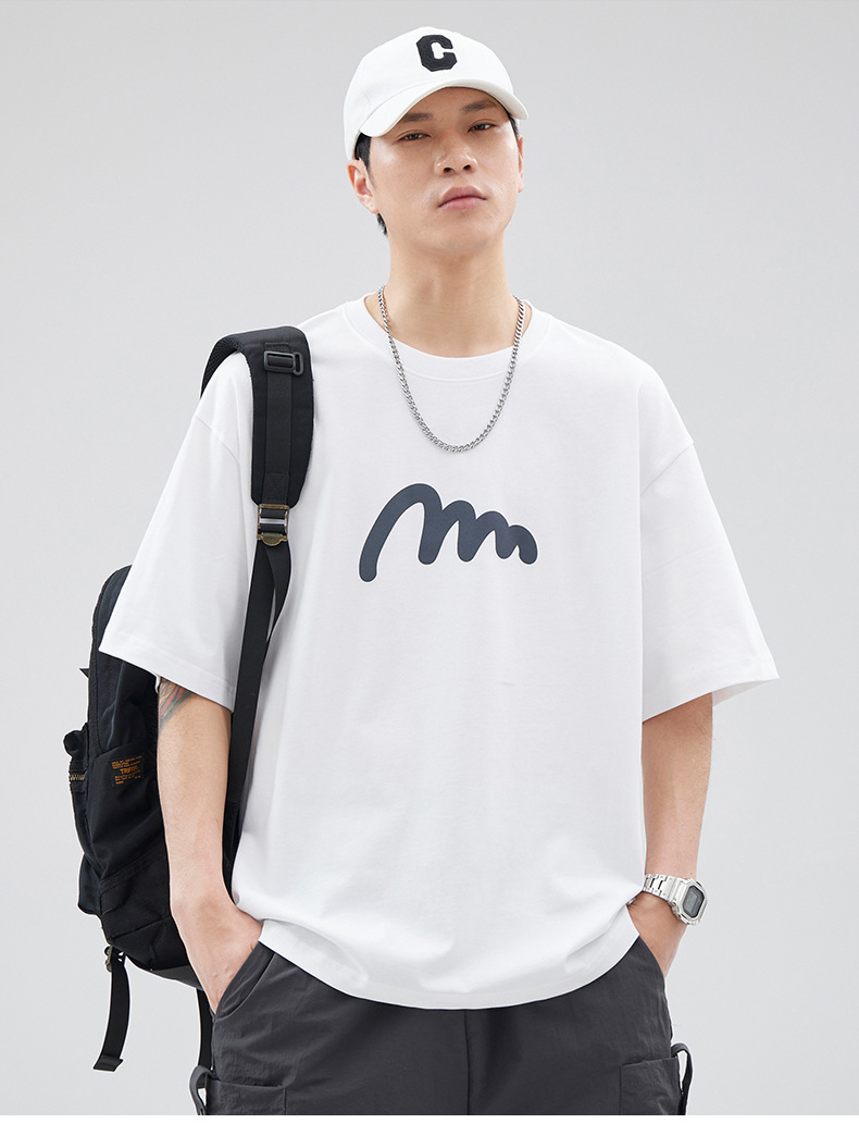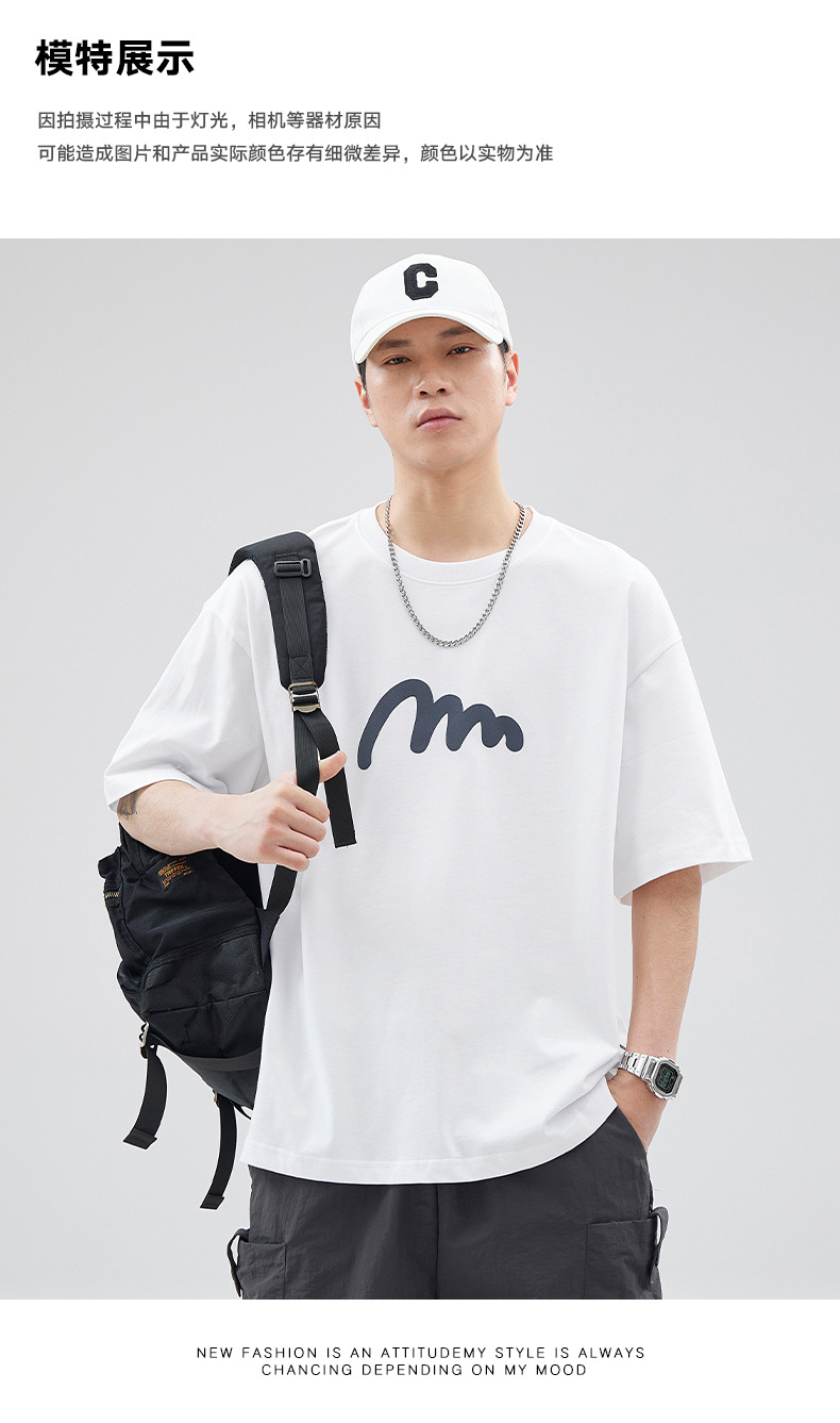 亦止男装2024夏季新款短袖T恤男潮牌印花宽松情侣装高街简约体恤