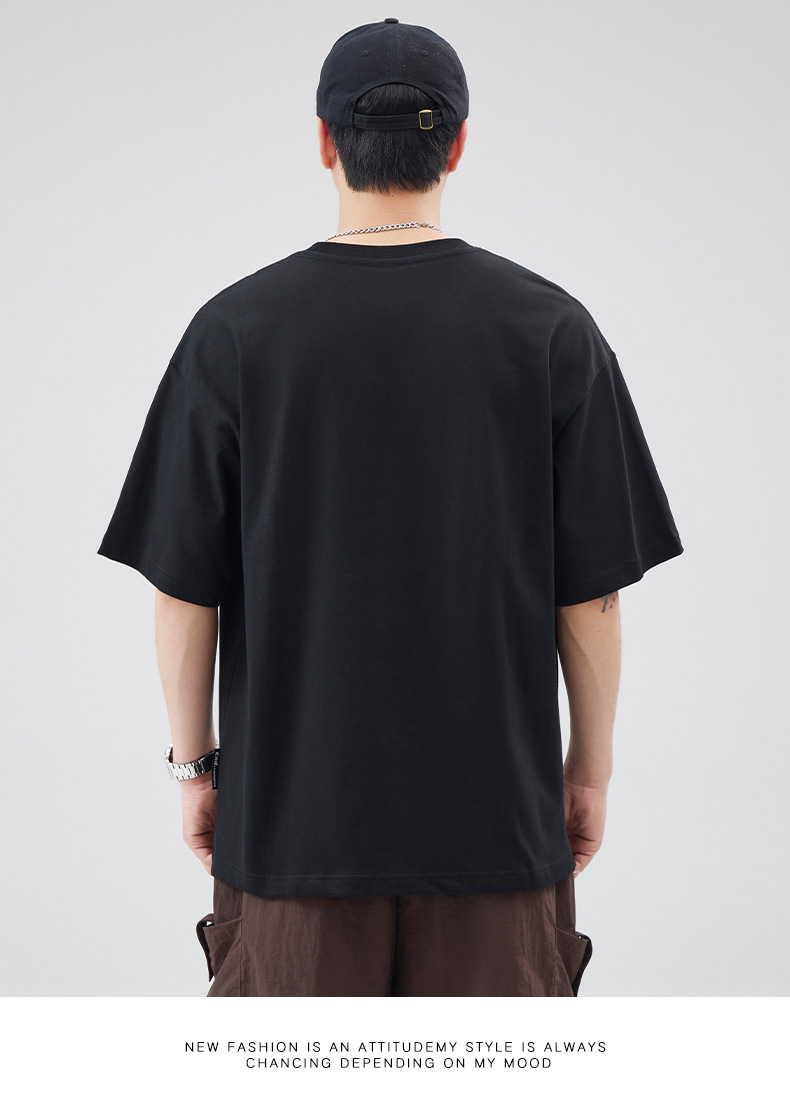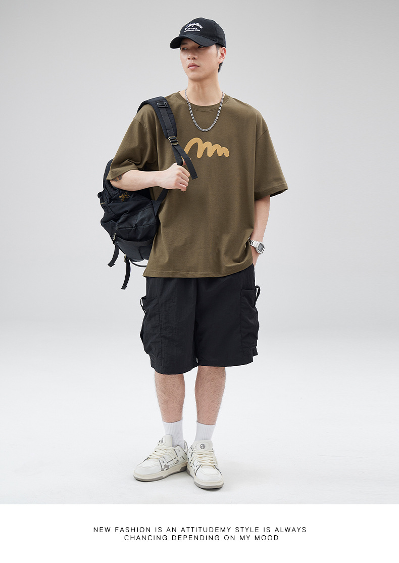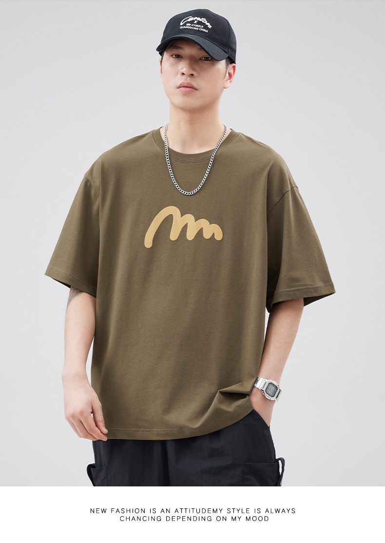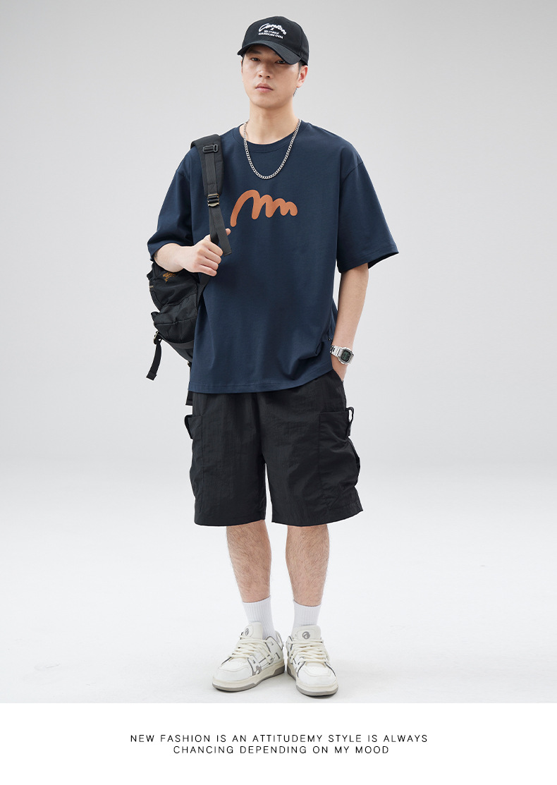亦止男装2024夏季新款短袖T恤男潮牌印花宽松情侣装高街简约体恤