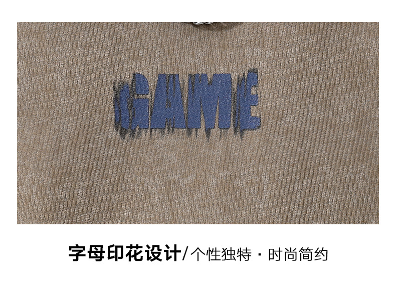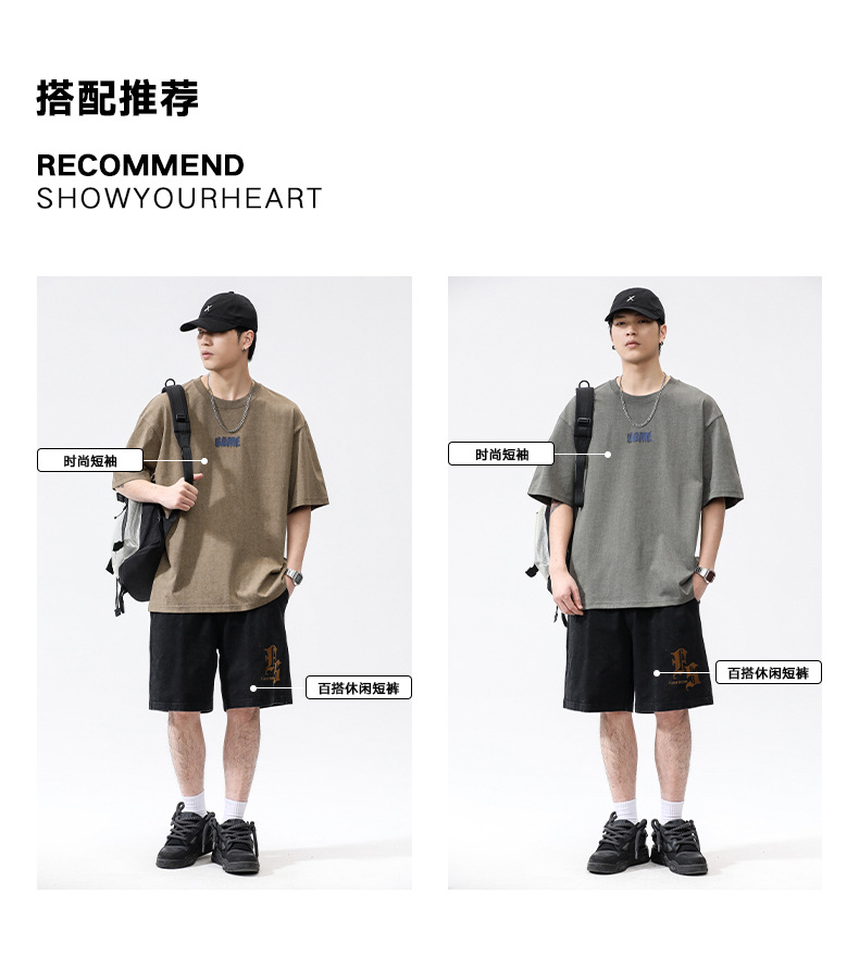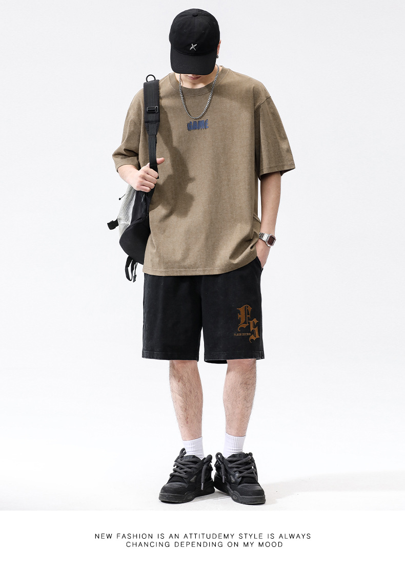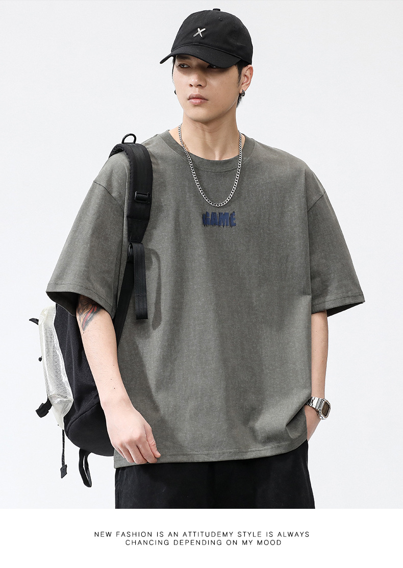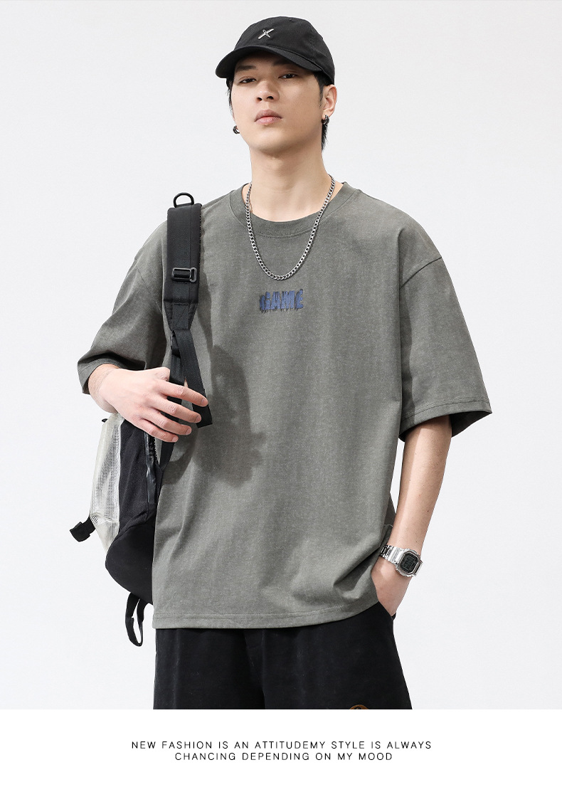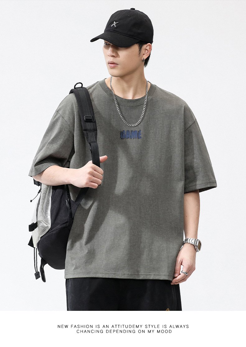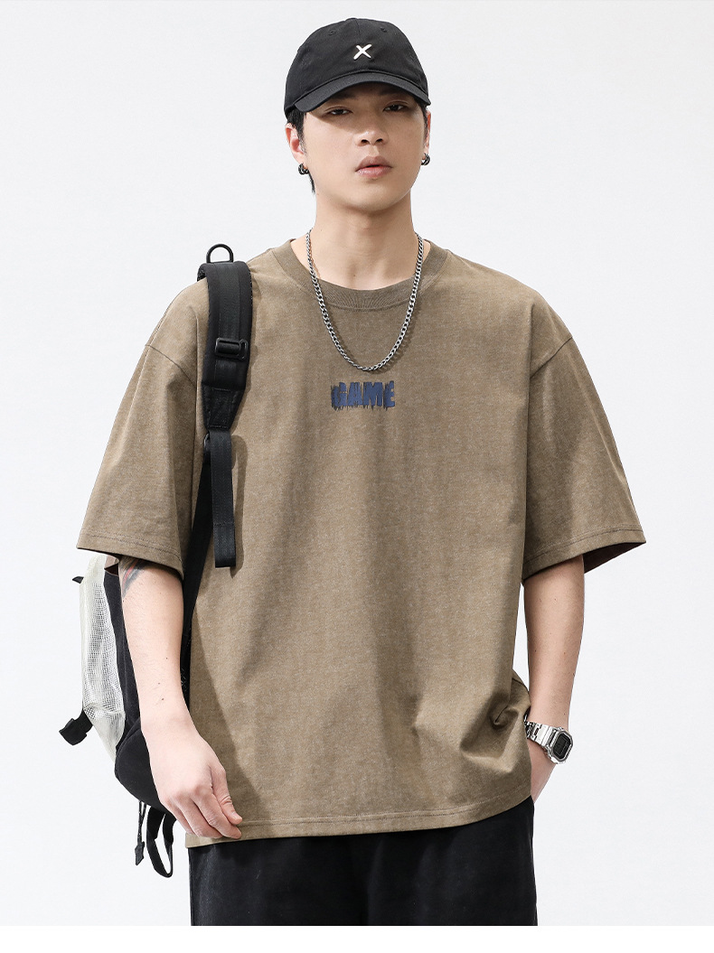 亦止男装原宿风复古做旧短袖T恤男夏季潮牌宽松美式高街打底衫男