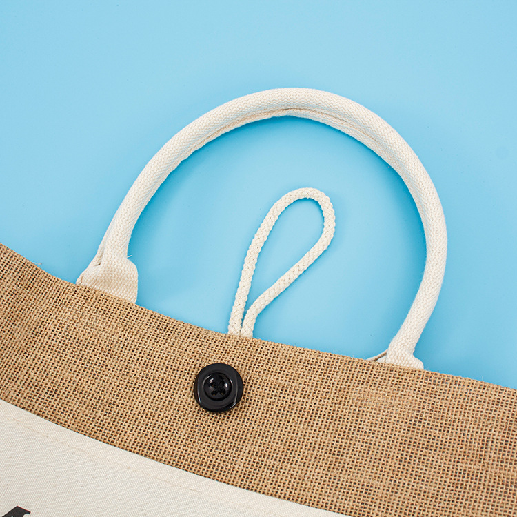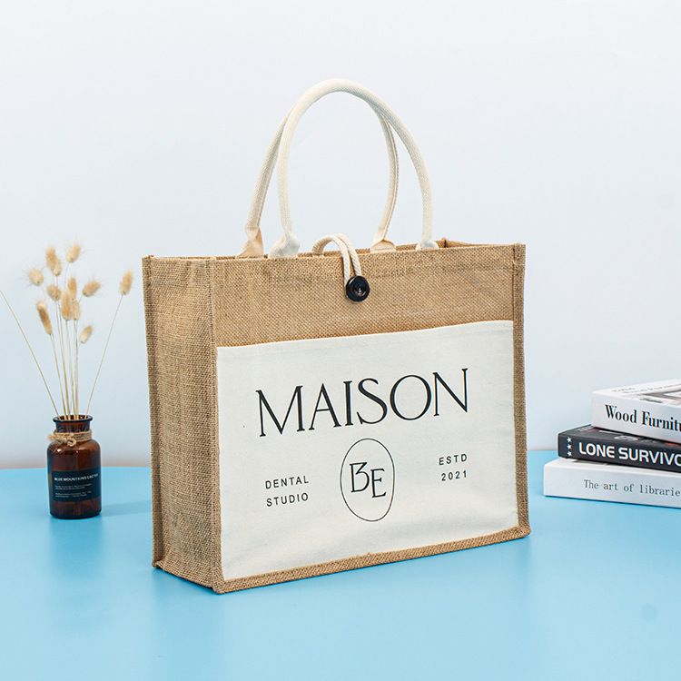 跨境文艺亚麻手提袋广告礼品黄麻布袋覆膜防水购物袋免费设计logo