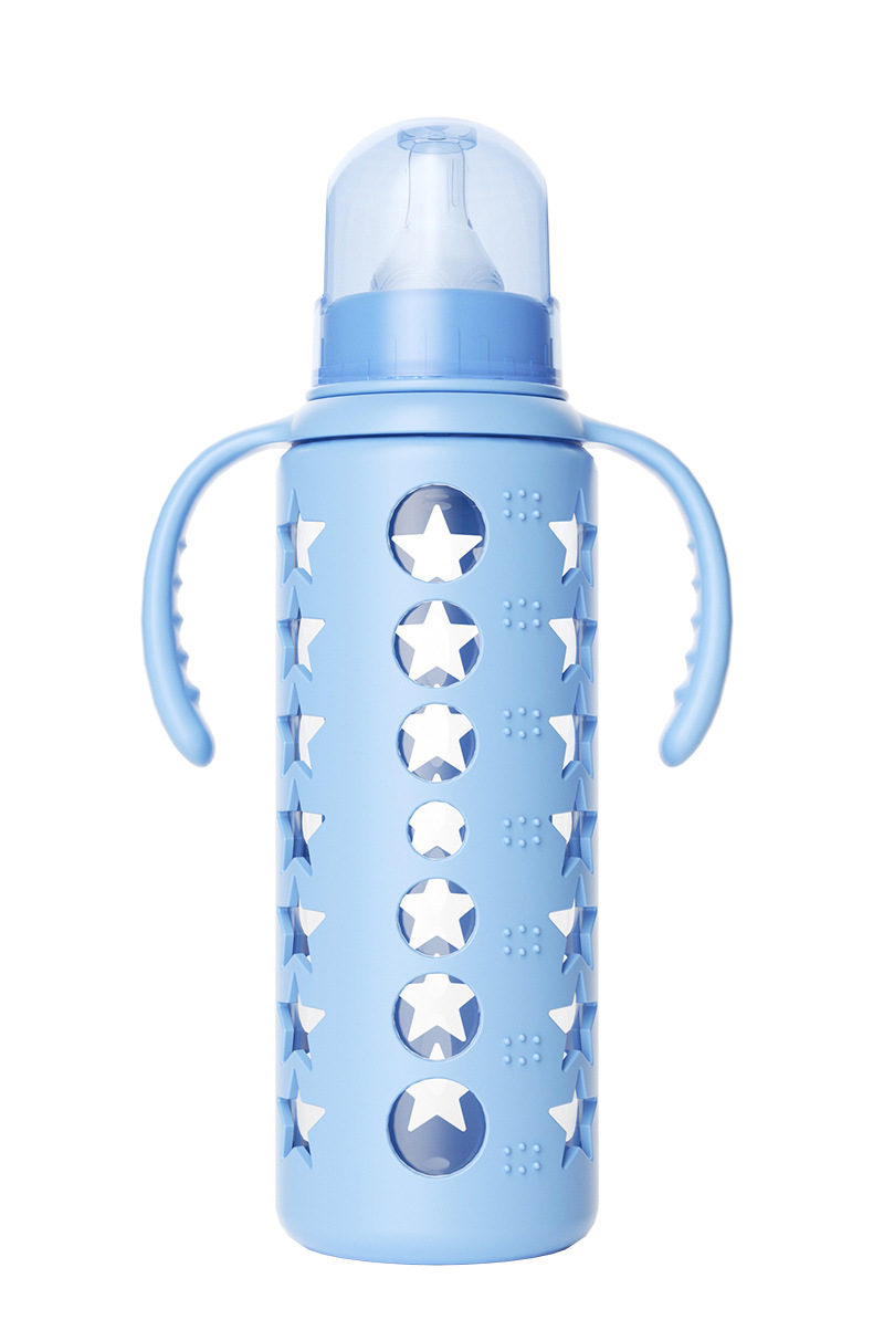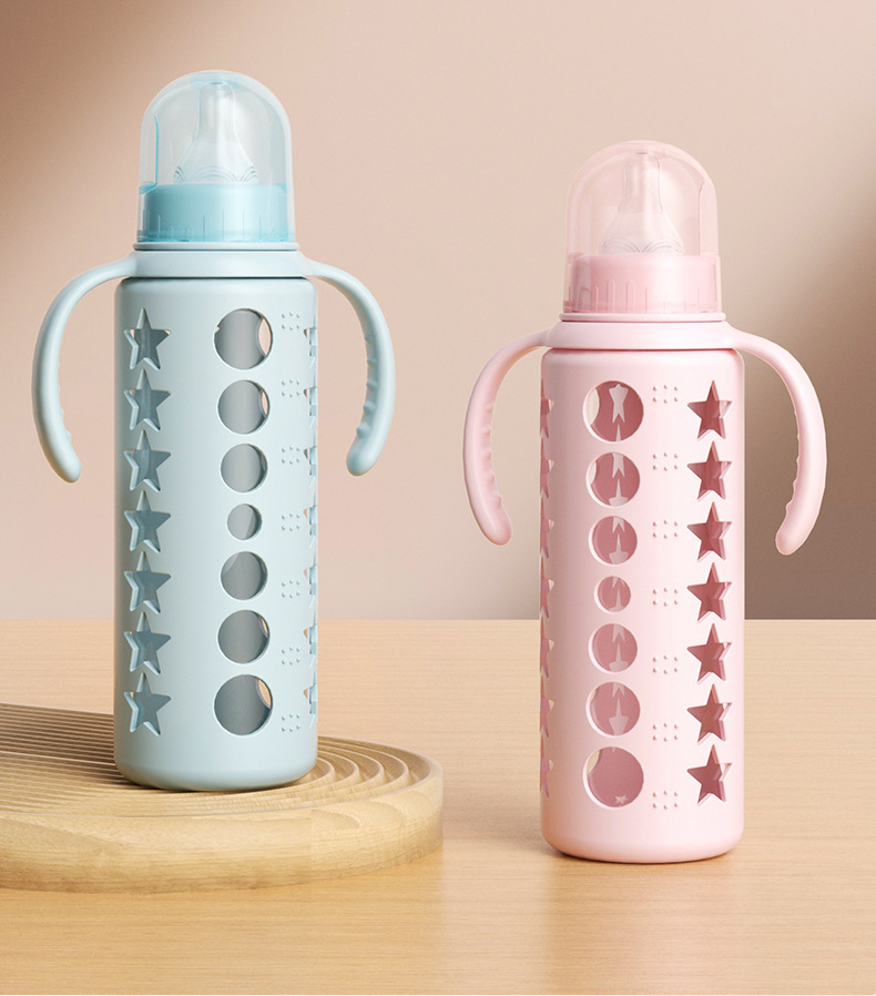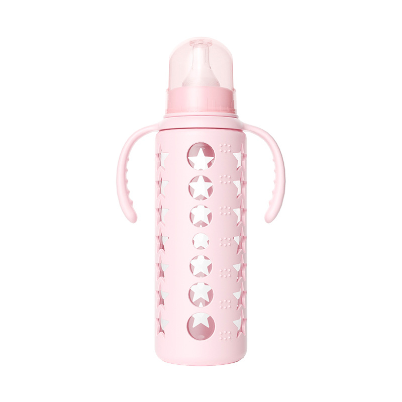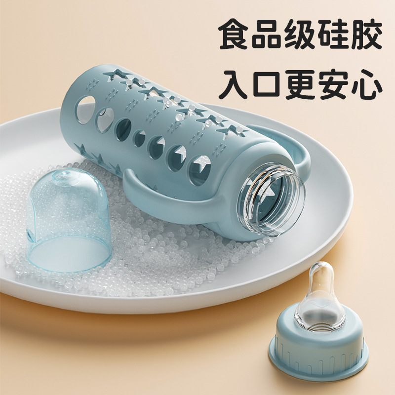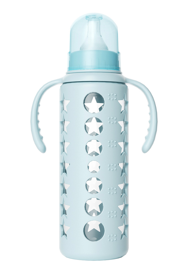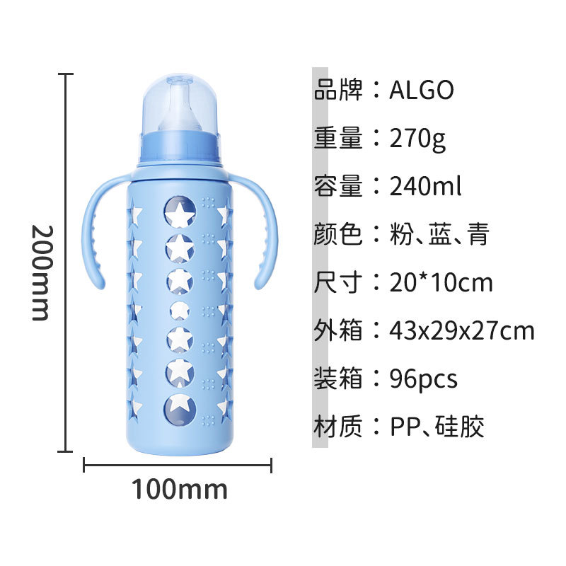 ALGO玻璃奶瓶婴儿标口单色手柄带硅胶套PVC盒新生儿240ml玻璃奶瓶