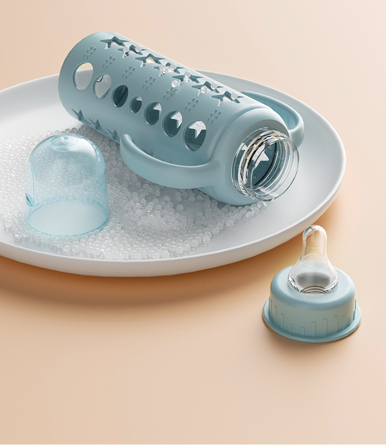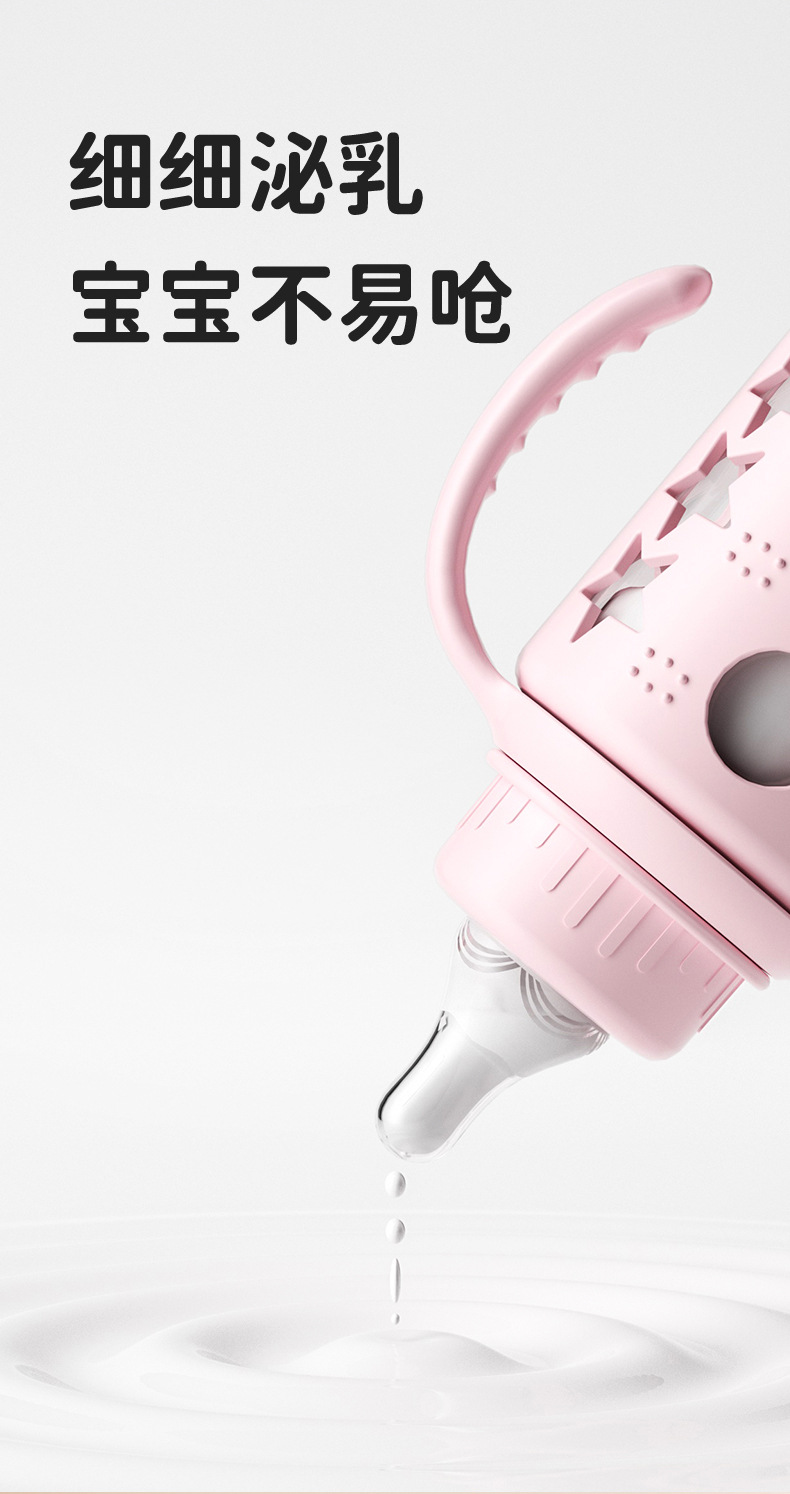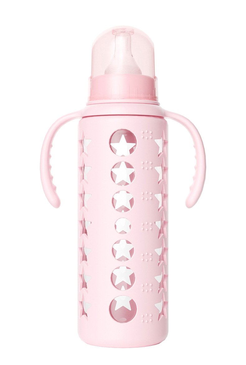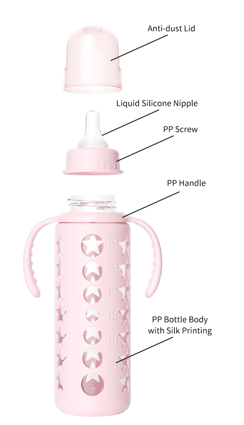 ALGO玻璃奶瓶婴儿标口单色手柄带硅胶套PVC盒新生儿240ml玻璃奶瓶