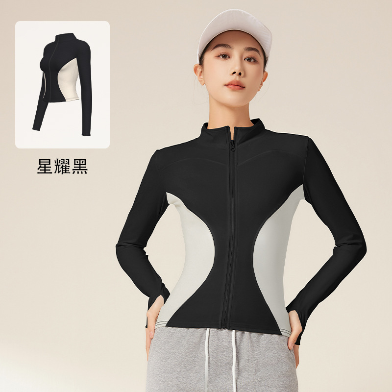 聚衣堂高弹运动外套立领修身显瘦瑜伽上衣健身服外套